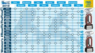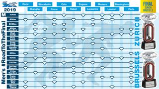 Event Disciplines Announced for 2019 Diamond League SeriesBy Adam Kopet The IAAF Diamond League released the event disciplines for the 2019 series. The 14-meeting series spans four continents with 12 regular-season meetings and two finals meetings. The Diamond League final winner in each discipline will gain a wild card for potential entry into the 2019 IAAF World Outdoor Championships in Doha, Qatar. Men's and women's 100, 200, 400, 800 and 1,500 meters, as well as sprint hurdles, 400-meter hurdles, pole vault and high jump will be held in six of the regular-season meetings, spread out across the 12. The men's and women's 5,000 meters, 3,000-meter steeplechase, long jump, triple jump, shot put, discus and javelin will each be contested four times across the 12 meetings. The Prefontaine Classic, scheduled for June 30 in Eugene, will include 13 Diamond League events. Pre Classic Men's Events