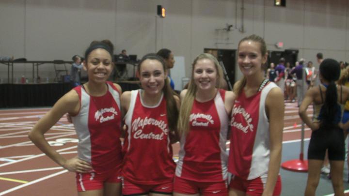 Naperville Central won the team championship in this high powered meet with 83 points edging Bloom Township for the title by one point. Lyons Township scored 74 points for third. Naperville Central received two event wins with Alissa Gorzak winning the Long Jump (17-9 ½, IL #5) and their 800 Meter Relay edging Bloom for the race win (1:48.99 – 1:49.16).