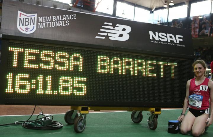 NATIONAL RECORD HIGHLIGHTS DAY ONE OF NEW BALANCE NATIONALS By Chris Lotsbom, ArmoryTrack.com/Dyestat.com NEW YORK (14-March) -- Five national champions were crowned here on day one of New Balance Nationals Indoor 2014, highlighted by Pennsylvania's Tessa Barrett, the 2013 Foot Locker champion, setting a new High School national record for 5,000 meters in 16:11.85. Teams from across North America traveled to The New Balance Track & Field Center at The Armory, competing in the most competitive high school meet of the winter season. Barrett, a senior, immediately went to the front of the championship 5,000. Coming in with the goal of winning and setting a national record, the 18-year-old powered lap after lap in 38 to 39 seconds. Joined early on by Iowa sophomore Stephanie Jenks, Barrett went through 1,600 meters in 5:03.4. The fast early pace startled Barrett just a bit. "I was like 'Oh boy, the last two [miles] are definitely going to be uncomfortable,'" she said with a laugh. In the middle mile, Barrett let up ever so slightly. While Jenks faded back in second, Barrett kept pressing, glancing up at the clock to gauge her pace. She passed 2 miles in roughly 10:15, a time that would be a new personal best. "All season it was my goal," she said of maintaining record pace through the finish. "Throughout the whole race I just felt really comfortable so I was like 'I may have a chance to do it.'" Coming off a national cross country title, Barrett knew that she had what it took to etch her name in the history book. Coming down the homestretch all by herself, Barrett broke the finish tape nearly seven seconds faster than Wesley Frazier's previous national and meet record from 2013 (16:18.01). For the fourth consecutive year at New Balance Nationals, a girls 5,000 national high school record had been set. "I can't even, like, explain it. I was hoping to get my second national championship but to break a record is really unreal. It's just unreal," exclaimed Barrett, a wide smile across her face. As is tradition, Barrett got to pose next to the finish clock that showed her record time, a dream come true for the Penn State-bound student-athlete. "I've always seen the pictures of everybody with the clock so that was a really fun part," she said. Also setting records were Jenks, who broke the sophomore class record (16:37.50), and Corning, N.Y. freshman Jessica Lawson, who broke the freshman class record with a time of 17:08.45. Finishing eighth overall in 17:16.82 was North Carolina's Kayla Montgomery, a senior who has multiple sclerosis. Montgomery's inspirational story has made national headlines. "It's really exciting to be able to raise so much awareness for MS, to just help people and be an inspiration for others," she said. In the Boys 5,000, Conner Mantz of Utah powered away from Tennessee's Aaron Templeton for the title. While Templeton led early on, it was Mantz making a decisive move in the middle mile. Picking up his pace with 400 meters remaining, Mantz went on to clock 14:24.33 for the win, No. 5 all-time. "It's finally good to have a great race," said Mantz, who was seventh at the Foot Locker Cross Country National Championships in 2013. "I just kept thinking I've done the training, I've mentally thought it out, I just got to go and do it." Setting a meet record to win the boys Distance Medley Relay was Cardinal O'Hara of Pennsylvania. Kevin James, Isiaih Cooper, Nick Smart, and Jim Belfatto combined to time 10:00.75, the second best mark all-time for high school runners and fastest ever at New Balance Nationals. Coming in, the quartet had the national record of 9:59.94 on their minds. "We're pretty pumped. We knew at the beginning of the season that we could get close to the national record if everything went right. Everything almost went 100 percent right but we're pumped to just have a national championship. This is probably the greatest thing that's happened to our program," said James, the leadoff leg. After fast runs by James and Cooper, Smart and Belfatto secured victory thanks to FAT splits of 1:53.69 and 4:11.51 for 800 and 1600, respectively. "It's exciting," said Belfatto, whose split is a personal best by about five seconds. Flyers TC (NY) placed second in 10:04.37, while Warrior TC (PA) was third in 10:04.45. The Girls Distance Medley Relay title went to West Springfield (VA), who held off Haddonfield Memorial (NJ) down the stretch, 11:43.39 to 11:43.94. West Springfield anchor Caroline Alcorta, the NYRR Millrose Games New Balance High School mile champion, crossed the line with an impressive 4:47.57 1,600 leg. The final championship of the day was the Girls High Jump, won by Massachusetts's Ellen DiPietro. DiPietro cleared 5 feet, 10.5 inches (1.79 meters), defeating last year's champion Cyre Virgo in the process. "I felt really energetic," said DiPietro. "I felt really fresh, really energetic, and I knew with my first jump I felt really good. Friday's competition also included more than 20 Emerging Elite events, with many seeing new meet records. Julia Heymach of Pearland, Texas, established a new Emerging Elite meet record of 10:39.40 for 2 miles, while the Boyz-DC team bettered the EE Sprint Medley meet record by more than three seconds with their 3:31.79 winning time. Action continues Saturday with more than ten hours of track and field action. Among the highly anticipated events are the Boys Shuttle Hurdles and 4xMile relay, as well as the Girls Shot Put, Long Jump, and 4x800m Relay. Stay tuned to the New Balance Nationals Facebook page all weekend for a free live webcast, photos and results. More news |