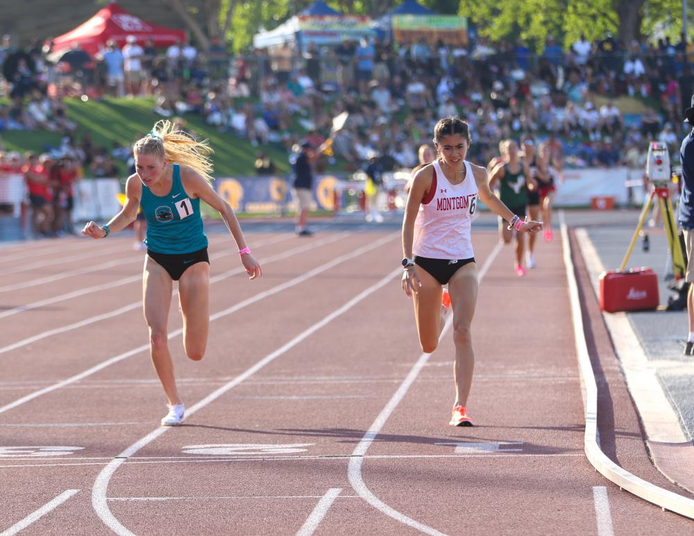 Servite Boys, Wilson (Long Beach) Girls Win Team Titles On Hot Night In Fresno; Herbst Twins Both Win State Titles; Khaliq Muhammad Vaults Meet Record By Doug Binder, DyeStat Editor Ken Martinez Photos Servite High and its all-freshman 4x100 relay squad came of age on Saturday on a sweltering stage at the California state meet, enduring the pressure and fulfilling its goals at Buchanan High in Fresno. Servite ran 40.27 ton win the relay, just .03 seconds off the 1989 meet record, and was on its way after that. The school scored 33 points and won the boys championship. The Long Beach Wilson girls repeated as champions with a dominant 46 points, with contributions in relays, hurdles and jumps. The array of standout performances, typical at the California state finals, was led by twin sisters Makenna and Morgan Herbst of Carlsbad, who won their respective specialties. Morgan Herbst won the 300-meter hurdles and did break Ebony Collins' 20-year-old meet record with her time of 39.64 seconds, defeating the defending champion, Kaylin Edwards of LB Wilson by nearly a second. That time is No. 2 all-time behind Sydney McLaughlin-Levrone. Makenna Herbst nearly broke Amy Weisenbach's legendary state meet record when she won the 800 meters final in US#2 2:02.28. Sister and brother duo Anisa Bowen-Fontenot and Jasir Fontenot of San Diego went back to back to win their respective hurdles races. Anisa won the 100 hurldes in 13.07 seconds, coming within .04 seconds of Vashti Thomas' 2007 record. Jasir, a freshman, won the 110 hurdles with 13.21w. In the boys pole vault, Khaliq Muhammad of Pittsburg cleared 17-10.50 to break Simen Guttormsen's meet record from 2019 by a half inch. That height also matched US#1. Another highlight was the girls 1,600 meters final, where Braelyn Combe of Santiago (Corona) eked out a narrow win over Hanne Thomsen of Montgomery, US#2 4:35.64 to US#3 4:35.69. Thomsen returned and later beat Combe's teammate, Rylee Blade, in the 3,200 meters with a meet record and US#2 9:48.98 to US#3 9:50.51. Both were under Jordan Hasay's 9:52.13 record from 2008. Conor Lott from Clovis North won the boys 1,600 in 4:03.32, closing in 56.65 to get away from Benjamin Bouie of Crystal Springs (4:04.84). Small-school standout Eyan Turk of Woodcrest Christian, the Division 5 cross country champion, won the boys 3,200 in 8:51.62. Landon Pretre of Menlo was second in 8:54.25. Naija Sizemore from Vanden won the girls 100 meters final in 11.33 seconds and she returned later to win the 200 in 23.18. Jaden Jefferson of De La Salle won the boys race in 10.27 seconds. Jefferson was credited with 10.01 in the semifinal, a meet record, but there are questions over whether it was a timing mistake. (Every runner in the heat ran several tenths faster than their PRs). Prince Buchango-Babalola of St. Ignatius won the boys 200 in 20.79 seconds. In the 400 meters, Jack Stadlman of Temecula Valley came through with victory in 46.02 seconds. He also placed second in the 200 in 20.82. In the closest race of the night, Jayden Rendon from Carson won the 300-meter hurdles in 36.491 and Kingston Waring of Culver City was second in 36.496. Wyland Obando of Long Beach Wilson won the 800 meters title in 1:51.24. Oaks Christian won the girls 4x100 relay in 46.08, edging out Long Beach Poly (46.18). Madison Mosby from St. Mary's Academy was elevated to first place in the girls final in 53.52 seconds, but only after officials disqualified Clara Adams from North Salinas for unsportsmanlike conduct after her father handed her a fire extinguisher and she doused her shoes. Adams was also not allowed to race in the 200. (The clock on the track initially showed 53.25 for Adams, a sophomore). McKay Madsen of Clovis North unleashed a big throw of US#3 69-11 to win the boys shot put by nine feet. He also got within three feet of the meet record in the discus with a mark of 210-8. His best this season is US#4 211-6. Keith Cotlage from Cajon jumped US#2 51-4.50 to win the boys triple jump. Jaslene Massey of Aliso Niguel won the girls discus with 163-9. Jurupa Valley's AB Hernandez, a transgender athlete who qualified for state in three jumping events, competed in front of a vocal group of protesters after making national headlines during the week. The CIF made rule changes in the week leading up to the meet to accomodate her participation. She did not displace any of the other girls from competing and she shared her podium positions with the next highest finisher. Hernandez jumped 42-2.75 in the triple jump and shared that title with Kira Gant Hatcher of St. Mary's College, who jumped 40-5. Hernandez was one of three clear 5-7 in the high jump, along with Lelani Laruelle of Monta Vista and Jillene Wetteland of Long Beach Poly. In the long jump, Long Beach Wilson's Loren Webster won with 21-0.25 and Hernandz was second with 20-8.75w. The CIF made its rule change in order to find middle ground over the contentious political issue. "The CIF values all of our student-athletes and we will continue to uphold our mission of providing students with the opportunity to belong, connect, and compete while complying with California law," the CIF said in a statement after announcing its rule change. Team Champions Servite boys 33 points, Wilson (Long Beach) girls 46 points - RESULTS |
