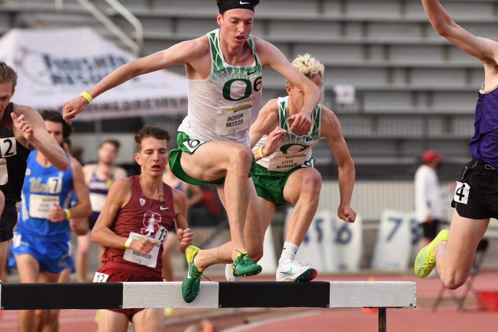 Oregon Men, USC Women Looking To Reclaim Titles On Sunday By Doug Binder, DyeStat Editor For the second night in a row at the Pac-12 Conference Championships, making their return at USC's Loker Stadium, a women's distance race provided a historically fast performance. Aneta Konieczek of Oregon led three women under the meet record in the women's 3,000-meter steeplechase, and won in a time of 9:36.74 to break a school record for the Ducks. Washington's Katie Rainsberger broke the Huskies record in second place, running 9:38.84. And Oregon State's Kaylee Mitchell shattered her own school record while taking third in 9:48.30. With eight of 21 events scored heading into Sunday's final session, Oregon and Arizona State are tied with 56 points and Washington is third with 53 points. Meanwhile, reigning champion USC is loaded for another run at the title on Sunday. The Trojans advanced six to the final of the women's 400 meters and four more to the finals of the 200. Twanisha Terry and Lanae-Tava Thomas ran the fastest times in the prelims of the 100. In the women's shot put, Arizona's Samantha Noenning got a hard-fought win over Arizona State's Jorinde Van Klinken, throwing 56-10 to win by less than three inches. Alysah Hickey and Rhesa Foster went 1-2 in the long jump for Oregon. Hickey's winning jump was 21-7.50. The Sun Devils also went 2-3-4 in the women's pole vault for 19 points. Washington's Makenna Barton, though, won it with 13-9.25. Washington's Lyndsey Lopes won the hepathlon by a mere eight points, 5,735 to 5,727, over Stanford's Allie Jones. Oregon's Jackson Mestler won the conference title in the steeplechase with a lifetime best 8:35.32, edging out Washington's Joe Waskom (8:35.71). Mestler's father, Rick, was a four-time All-American at Oregon in the same event. Going into the final day, Oregon trails Washington 68-54. The Ducks are seeking their 14th straight conference team title. Oregon picked up another win in the decathlon, where Max Vollmer scored 7,638 points. Washington's Oliver Thorner and Parker Kennedy pulled in 13 points with second and fourth-place finishes. Arizona's Justice Summerset won the high jump with a clearance at 7-2.50. Another Wildcat, Jordan Geist, won the shot put with 66-9.25. UCLA's Harrison Schrage won the long jump on his first attempt, which went 25-7.50. Schrage, who has track duty on Sunday, passed his final three attempts. That left the door open for someone to pass him, and Oregon's Isaiah Griffith got closest, but finished second with 25-6.