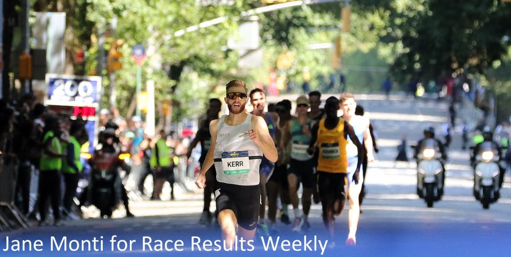 KERR BREAKS HISTORIC RECORD AT NEW BALANCE FIFTH AVENUE MILE By David Monti, @d9monti (c) 2024 Race Results Weekly, all rights reserved - Used with permission. NEW YORK (08-Sep) -- With perhaps a little push from a friendly north wind, Scotsman Josh Kerr of the Brooks Beasts Track Club broke one of the oldest and most significant records in American road running here today, running away with the 43rd edition of the New Balance Fifth Avenue Mile in a blistering 3:44.3. Kerr, the newly-crowned Olympic 1500m silver medalist who also won on Fifth Avenue last year, smashed Sydney Maree's vaunted 1981 event record of 3:47.52 which had stood for 43 years. "I said to the meet director beforehand, I took Sydnee Maree's NCAA (1500m) record off him in... 2018 when I was running for the University of New Mexico," Kerr told reporters. "I know how hard that was when that was the time. It was a nice, nostalgic moment trying to go after his record today. He's one of the most successful 1500m runners in the world's history. Those are the kind of times I'm going after." Kerr executed today's race perfectly. He stayed to the outside during the first half allowing Eric Holt (Puma/Empire Track Club) lead the charge for the $1000 halfway prime. The first quarter, which is downhill, went past in about 57 seconds. Holt put in a surge at halfway, but his move was covered by Irishman Cathal Doyle (Concliffe Harriers) who out-leaned Holt for the prime. Kerr waited a few seconds, then surged away from the field. "I'm fit and healthy," said Kerr, who only finished fifth in the 1500m at the Zürich Diamond League meeting on Thursday night. "I was really looking forward to this race and it makes a big difference coming into these things." Hobbs Kessler (adidas) was the only athlete to give chase, but by the three-quarter mark (about 2:51) Kerr had a big lead and was still accelerating. "I knew no one's going to get better conditions than a tail wind and a sunny day in New York," Kerr said. Kessler, who finished fifth in the Paris Olympic 1500m, faded badly in the final quarter and would only finish ninth in 3:52.1. Josh Hoey (adidas), an 800m specialist who ran 1:43.80 in July, was the surprise runner-up in 3:48.9. Third went to Kenyan Amon Kemboi (Puma Elite Running) who clocked 3:49.3. Vince Ciattei (Under Armour/Dark Sky Distance) and Germany's Robert Farken (On Running) rounded out the top five in 3:50.6 and 3:51.9, respectively. Hoey, who had only run one road mile in his career, had never run the race before. "I've come up (from the Philadelphia area) to watch it a bunch of times," Hoey told Race Results Weekly. He continued: "When Kerr took it from the halfway point I knew it was going to be tough. I was ready to cover and really focused on those last 400 meters." Seventeen of the 19 men who competed broke four minutes. Doyle, who won the prime, finished eight in 3:52.2. SCHWEIZER TIES COURSE RECORD Karissa Schweizer of the Nike Bowerman Track Club did not come into today's race as the favorite to win. It was only her first time running on Fifth Avenue, and her entire season was focused on the 5000m and 10,000m where she achieved podium finishes at the USA Olympic Trials, and top ten finishes in both disciplines at the Paris Olympics. But today the 28 year-old, who ran for the University of Missouri during her NCAA career, showed she has as much leg speed as anyone. Sticking close to the front in the first half, Schweizer got away from the main field at halfway when Kenya's Susan Ejore (Under Armour/Dark Sky Distance) went for the halfway prime and compatriot Dorcas Ewoi (Puma Elite Running) came along for the ride. The trio dropped USA Olympian Whittni Morgan and glided along the pavement in the third quarter together. Schweizer was feeling confident. "I feel like I've just been kind of getting momentum going as the season's been actually ending," Schweizer told reporters. "But, it's been fun to just race and not have pressure coming into these races. Even like the night before I was like, oh, maybe I could even win this thing." The three protagonists looked to be well-matched in the final quarter. Ejore, who finished sixth in the Olympic 1500m, fell back near the three-quarter mark, but battled back and caught up again. Ewoi made a big move for the win with only about 250 yards to go getting ahead of Schweizer, but the 2016 NCAA cross country champion quickly retook the lead and managed to stay in front. "I love the mid-distance, 1500 races, but I like them more as strength races," Schweizer explained. "I know this one always goes fast, so I was really excited about that." Ewoi, who like Schweizer was making her Fifth Avenue debut, took second in 4:17.3, a time which would have won 38 previous editions of the race. She said she got confused about her position in the final quarter and was tired from running the first quarter too fast. "I was out of energy," lamented Ewoi. Britain's Melissa Courtney-Bryant (New Balance) took fourth in 4:19.9 and newly-minted pro Gracie Morris (Puma Elite Running) took a surprise fifth place in 4:20.4. Emily Mackay, the only 2024 USA 1500m Olympian on the women's side to race here today, finished seventh in 4:22.1. - - - - - - With heats which began early in the morning, today's race had a total of 8,807 finishers, according to New York Road Runners, the race founders and organizers. That was the largest total since the race record of 9276 was set in 2019. The oldest finisher was 91 year-old Eric Seiff of The Bronx who clocked 15:05. PHOTO: Josh Kerr running away from the field at the 2024 New Balance Fifth Avenue Mile (Photo by Jane Monti for Race Results Weekly) PHOTO: Karissa Schweizer winning the 2024 New Balance Fifth Avenue Mile (Photo by Jane Monti for Race Results Weekly) PHOTO: Josh Kerr and Karissa Schweizer celebrating their victories at the 2024 New Balance Fifth Avenue Mile (Photo by Jane Monti for Race Results Weekly) More news |
