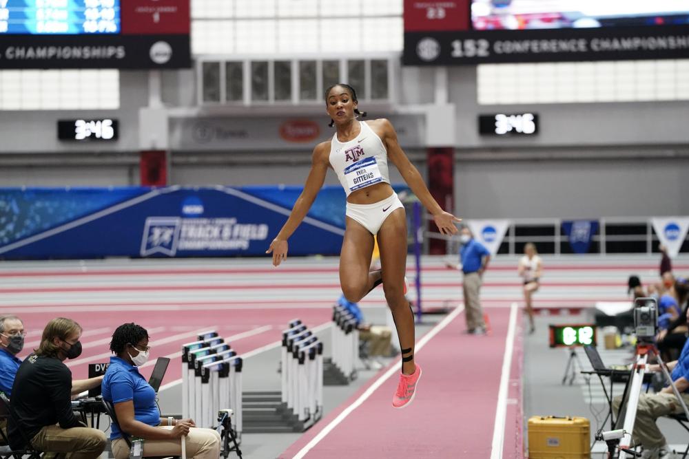 High Jump Final Tyra Gittens became the first double winner on the women's side, winning the high jump after taking the pentathlon with a record-setting score on Thursday. She is the first athlete in meet history to pull off the pentathlon/high jump double. Gittens led an all-SEC parade of the top four spots, matching the feat from 2017. Gittens took one attempt at 6-4.25 (1.94m) , which was a centimeter higher than her lifetime best clearance at 6-4 (1.93m) on Thursday. She won the competion when she was the only athlete to clear 6-2.75 (1.90m) and she got it on her second try. South Carolina freshman Rachel Glenn finished second thanks to a first-attempt make at 6-1.50 (1.87m). Anna Hall of Georgia cleared the same height and finished third. Abigail O'Donoghue of LSU was fourth with 6-0.50 (1.84m). WINNER: Tyra Gittens, Texas A&M, 6-2.75 (1.90m) What She Said: "I didn't really know how to feel. I know what I can do, but how do you repeat yesterday? I took a chance and I trusted my training and today was a success. I'm really happy with just how everything has come together. I can't really say I'm surprised, but I'm so proud of myself, I really am. "High jump has been my first love for forever. It was my first event when I started track and field, so having the success that I've been having in it, it's definitely reassuring and it's a confidence booster. I'm excited for outdoors, and I'm excited for all the seniors that weren't indoors to be outdoors, and I'm excited to continue to see what I'm capable of, because if you had asked me like six months ago about the Olympic standard in the high jump (1.96m), I would have been like, 'Maybe, that would be great,' but now that I see that it's very reachable and achievable, I'm getting excited. I'm excited to try it again."