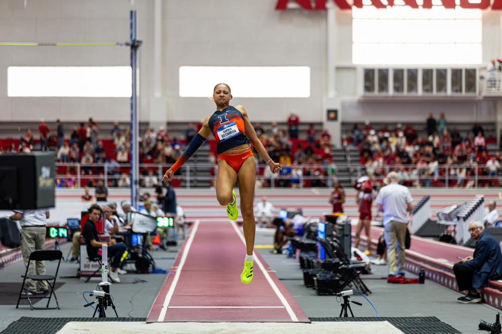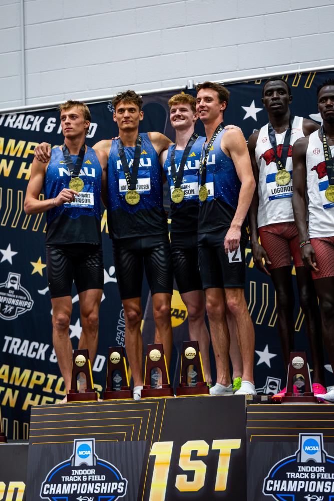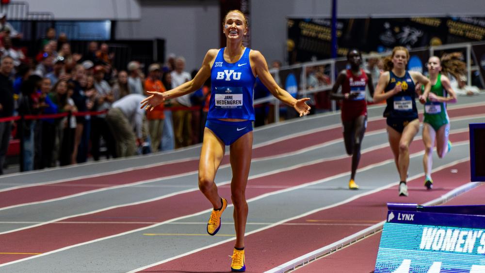 Friday Recap: Women's Team Race Draws Tighter Between Illinois And Oregon; NAU Wins Men's DMR; Habtom Samuel Beats Marco Langon In 5,000; Peyton Bair On Record Pace In Multi By David Woods for DyeStat Corbin Smith Photos FAYETTEVILLE, Ark. – The NCAA Indoor Championships are a worlds-style meet featuring athletes from 45 countries. Yet on a night when the world list was revised and four collegiate records nearly fell, it was a 19-year-old Utah woman who elevated this meet to majestic. BYU freshman Jane Hedengren, a generational talent refusing to concede to older rivals, won her first NCAA title Friday. In doing so, she beat Alabama’s Doris Lemngole, who has the best resume of anyone at this track and field meet. Lemnogle, the 2025 Bowerman Award winner, had twice beaten Hedengren, and decisively -- in NCAA cross country Nov. 25 and the Millrose Games 3,000 meters Feb. 1. On Friday the 13th, Hedengren’s luck changed. No luck involved, though. Hedengren won the 5,000 with a bold, grinding, stay-with-me-if-you-can finish. She did not come near the collegiate record of 14:44.79 she set Dec. 7, but her time of 15:00.12 left Lemnogle more than three seconds behind. Hedengren ran the last 600 in 1:37.65, which might not be fast enough for a global medal but is evidence she is on her way. Hedengreen conceded it had been “discouraging” to be left behind by Lemnogle before. “It was pretty instinctual,” Hedengren said of her move. “I just wanted to take the race as it comes today. I feel like there are a lot of ways to win races. It’s cool to see and watch film and learn from some of the best.” She said she simulated the finish in workouts and suggested this 5,000 felt like practice. After Hedengren, the next six were Kenyans. The 24-year-old Lemngole was second in 15:03.42. New Mexico’s Pamela Kosgei, 21, the NCAA champion at 5,000 and 10,000 last June, was third in 15:07.76. Hedengren and Lemnogle are to meet again in Saturday’s 3,000. Before that race, stat geeks can occupy their time charting and projecting and predicting a race for the team championship. Through five of 17 events, Illinois has 30 points and defending champion Oregon 20. The DyeStat form chart had the Illini outscoring Oregon 16-0 in the pentathlon. Instead, Oregon outscored Illinois 10-8. That 18-point swing has turned NCAAs into a rematch of the Big Ten, in which Oregon beat Illinois 101-93. The flashresults.com website projects Illinois over Oregon 45.1 to 45 – yes, by one-tenth of a point. BYU (36), Arkansas (34.83) and Georgia (34.5) remain in the mix, too. Oregon’s Liisa-Maria Lusti, a 22-year-old Estonian who was fourth in the Big Ten, scored 4,498 points to become the first freshman to win the pentathlon since Kendell Williams of Georgia. Williams set what was then a collegiate record of 4,635 in 2014. Second was another freshman, Illinois’ JaiCieonna Gero-Holt, who had personal bests in the three closing events to finish with a Big Ten record of 4,466 points. Previous Big Ten record was 4,459 by teammate Meagan Humphries, who came here as the collegiate leader and came away with nothing. Humphries’ score of 4,267 had seemingly given her eighth. She was disqualified for stepping on the rail in the 800 meters, and Illinois lost a precious point. A third freshman, Vanderbilt’s Janie Ford, scored 4,405 and was fourth behind Cincinnati’s Juliette Laracuente-Huebner, 4,442. Sophia Beckmon of Illinois became the first Big Ten athlete to win any of the three jumping events at indoor NCAAs (excludes pole vault). She is just the fourth Illini woman to win at indoor NCAAs. Beckmon had the three longest marks of the competition: 22-5.25 (6.84m), 22-0.75 (6.72m) and 21-11.75 (6.70m)). The latter was also recorded by runner-up Alyssa Jones of Stanford. “I knew this was coming,” Beckmon said. “But again, I still wanted that 7 meters.” If Illinois does win its first team championship, a turning point will be the 20-pound weight, in which South Africa’s Phetisang Makhethe climbed from fourth place to second in the fourth round. She became the ninth collegian to exceed 80 feet. Winner was also an African, Minnesota’s Anthonett Nabwe, a Liberian whose distance of 82-5.5 (25.13) made her No. 3 on the all-time collegiate list. In the only other final, anchor Wilma Nielsen gave Oregon victory in the distance medley relay in 10:48.76. South Carolina, anchored by Salma Elbadra’s 4:26.50 for 1,600, was second in 10:49.69. BYU, without Hedengren or Riley Chamberlain, was sixth in 10:52.14. In women’s trials, Georgia freshman Adeajah Hodge, on her 20th birthday, lowered her world lead in the 200 to 22.28. Shenese Walker of Florida State ran a collegiate-leading 7.07 in the 60. Men’s recap: Samuel beats Langon (again) in 5,000 The 5,000 for men was as compelling as it was for the women. The race was won by New Mexico’s Habtom Samuel over Villanova’s Marco Langon, 13:36.58 to 13:36.98. It was a rematch of a Dec. 6 race at Boston in which Samuel beat Langon, both timed in 13:05.21. They meet again in Saturday’s 3,000. Samuel, a 22-year-old Eritrean, is 10-0 this season against collegians (cross-country and indoors). Langon conceded he got too far behind Samuel. Their respective last 200s were 26.55 and 26.64. With 50 meters left, Langon said, he thought he would win. “I thought it was going to be a little easier to get up on Habtom’s shoulder,” Langon said. “I know I close faster and harder. I gave him too much space at the end. “I mean, he’s an African. So he’s strong as hell and was born at altitude, and he knows how to play the game.” Samuel said he has trained for faster finishes. In championship racing, he said, “You have to be more smart, understand the game and speed as well.” In team scoring, Arkansas leads with 14 points, followed by Kansas and Virginia with 13 each. Projections: Arkansas 49.5, Florida 31, Kansas State 30.5, Penn State 27.5, Oregon 26. Joining