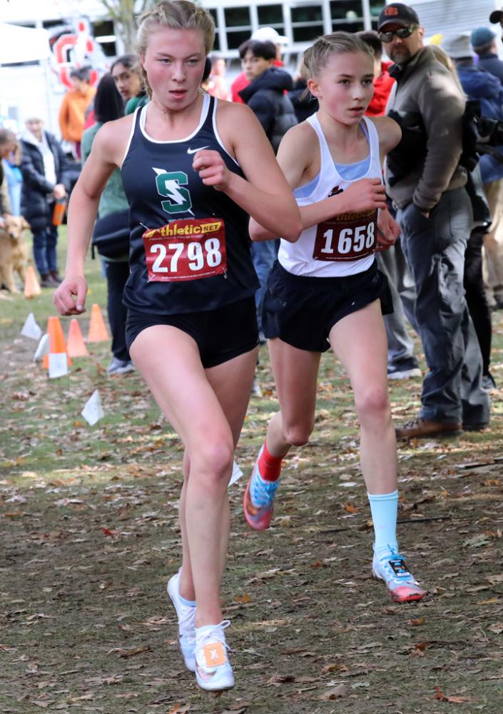 Fiona Max Leads Summit To 18:03 Average For 5 Scorers By Doug Binder, DyeStat Editor PORTLAND – The reigning national championship girls cross country team from Summit High in Bend hasn't gone up against very many highly ranked teams so far this fall. But when you've got 9-10 athletes vying for spots on the postseason team – and an array of data points that are easily compared to 2018 – the Storm knows good from bad, right from wrong. On Saturday at the Warner Pacific XC Classic on a rain-soaked course at Lents Park, Summit romped to a Gold Division team title with 36 points. The top five, led by Fiona Max's win in 17:16.2 over 5,000 muddy meters, averaged 18:03. Truth be told, that's a little bit slower than last year when the course was drier and faster. The good news for Summit is that despite the conditions, Max was 12 seconds faster than 2018 and third-place finisher Teaghan Knox was two seconds faster. Isabel Max, gaining confidence with each passing week after returning from injury, ran 18:19.4 on a course where she ran about 20 seconds faster in 2018. "I think the team really stepped it up today," said Jasper Fievet, the team's No. 4 on Saturday in 18:20.8 – 11 seconds faster than last year. "We knew it was an important race with good teams here and so we all performed and went super-hard." Summit beat Northwest region No. 4 Lincoln Cardinals, 36-90. That was a pretty strong statement. The Storm's JV squad scored 16 points with a lineup that included winner Azza Borovicka Swanson and Kelsey Gripekoven, members of the 2018 team's scoring five at Nike Cross Nationals. Healthy competition on a deep team is keeping the top seven sharp, even if it's a somewhat fluid lineup. "The course of the year for everyone has been a little bumpy, but I think that's helped us facing that adversity and coming though the other side," Isabel Max said. The race up front was one of the most highly anticipated of the year in Oregon, with Lincoln freshman phenom Kate Peters getting her first crack at the Class 6A individual champion and Nike Elite camper, Fiona Max. Peters ran 16:58 a week ago at the Hole In The Wall Invitational in Washington – the fastest 5K time by an Oregon girl in four years. On Saturday, Peters was right behind Max for most of the race. A final hill before the sprint to the finish proved to be the breaking point. Max, ranked No. 14, attacked the hill and built a seven-second lead to pull away and take the victory. Peters, ranked No. 23, finished in 17:24.7. "Kate is going to do amazing things and she's an amazing athlete," Fiona Max said. "After Hole In The Wall, I was kinda hoping she was wanting to push for sub-17 because we both knew this was a fast course and I was kind of looking for that, too. "Today was not the day. We found out the mud really slows you down." Peters was upbeat after the race. She knows she will have another shot at Max assuming both qualify for the state championship meet. "She's really nice, so it's fun racing against her," Peters said. "It felt pretty good until the last lap and the hill, and she took me and kept going." Franklin's boys got an impressive 1-2 finish out of standouts Aidan Palmer (15:03.4) and Charlie Robertson (15:04.6). Jesuit, the top-ranked 6A team in the state, came to Lents Park to watch but did not race its top guys after back-to-back hard efforts in Washington state. Ahmed Ibrahim of Parkrose finished third in 15:11.1 after making a hard push mid-race and sprinting past the lead bicycle. Franklin scored 77 points for the win, easily defeating Sherwood and South Eugene, who tied with 134 points. More news |