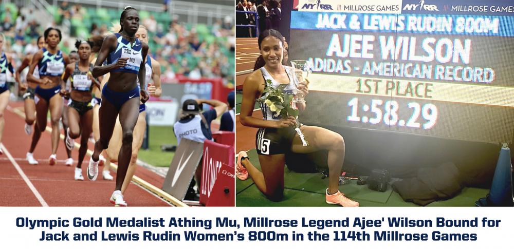 Olympic Gold Medalist Athing Mu, Millrose Legend Ajee' Wilson Bound for Jack and Lewis Rudin Women’s 800m in the 114th Millrose Games (Left) Olympic gold medalist Athing Mu en route to an American record in the women’s 800m this year at Prefontaine Classic, setting the current mark at 1:55.04; (Right) Ajee' Wilson following her American indoor record-setting performance in the Jack and Lewis Rudin Women’s 800m during the 113th Millrose Games. Photos by John Nepolitan.