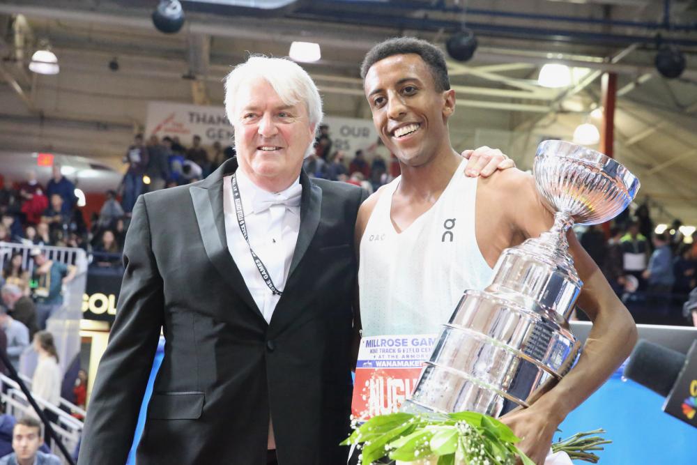 Three American Records Part Of Record-Breaking 116th Edition Of New York's Premier Meet: Fisher, Monson In 2 Mile, St. Pierre In Mile By David Woods for DyeStat NEW YORK – A miler ran to a world indoor record at the Millrose Games. Just not in the mile. Put it this way: After a 2-mile world record of 8:00.67, Josh Kerr is more than upholding the legacy of British runners. Elsewhere on a a riveting Super Bowl Sunday matinee at this 116th meet, the Bahamas’ Devynne Charlton broke a world record of 7.67 seconds in the 60-meter hurdles, Elle St. Pierre and Alicia Monson ran to American records in the mile and 2-mile, Grant Fisher broke an American record behind Kerr, and Yared Nuguse won the men’s mile in 3:47.83. With Sebastian Coe in attendance, Kerr effectively ran back-to-back Roger Bannister miles and broke a Mo Farah record. INTERVIEWS/MEET VIDEOS | RESULTS “Mo Farah records are one of the most difficult records to beat,” Kerr said. Running the closing 440 yards in 56.97 seconds, the 26-year-old Scot nearly became the first man to run a sub-8-minute 2-mile indoors. He crushed Farah’s record of 8:03.40 set at Birmingham, England in February 2015. Fisher (8:03.62) and Cole Hocker (8:05.70) finished second and third, both under Galen Rupp’s American record of 8:07.41 from 2014. Geordie Beamish was fourth in a New Zealand record of 8:05.73. Morgan McDonald was fifth in an Australian record of 8:12.01. Top four climbed to Nos. 1, 3, 6 and 7 on the all-time performer list. At 3,000 meters, Kerr clocked 7:30.16 and Fisher 7:30.91. NBC’s televised coverage had barely begun before Charlton took down one of the sport’s oldest indoor records. Her 7.67 broke the record of 7.68 set by Sweden’s Susanna Kallur in 2008. Perhaps more impressive is who she beat: world champions Danielle Williams and Nia Ali, American record-holder Sherika Nelvis and world leader Tia Jones. “I heard the announcer say something that sounded like 'world record,’ but it didn't hit me until I saw my name and time on the clock,” said Charlton, the world indoor silver medalist in 2022. “I can't describe that moment." Williams, a Jamaican who won the 100-meter hurdles at last August’s World Championships, was second in 7.79. Jones was third, also in 7.79. Ali was sixth in 7.95. St. Pierre, just 11 months after childbirth, ran the closing 440 yards in 61.33 to win the mile in 4:16.41 and break her four-year-old American record of 4:16.85. Only faster indoor miles were by two Ethiopians, Genzebe Dibaba (4:13.31) in 2016 and Gudaf Tsegay (4:16.16) last year. Harvard’s Maia Ramsden, of New Zealand, was eighth in 4:24.83. She narrowly missed the collegiate record of 4:24.26 set by North Carolina State’s Katelyn Tuohy last year. The women’s 2-mile had an unsatisfying finish because apparent winner Medina Eisa, the 19-year-old Ethiopian, was disqualified after overtaking Great Britain’s Laura Muir in the closing stretch. Muir said afterward she knew Eisa would be DQ’d for cutting in too soon on the first lap. So, Muir was first in 9:04.84, second-fastest ever behind Dibaba’s 9:00.48 from 2014. Melkanat Wudu of Ethiopia was second in 9:07.12. Monson was third in 9:09.70, breaking St. Pierre’s American record of 9:10.28 in 2021. Monson also holds American records at 3,000, 5,000 and 10,000 meters. Muir, Wudu and Monson climbed to Nos. 2, 4 and 5 on the all-time list. Nikki Hiltz, another miler, finished fourth in 9:15.80. In the climactic Wanamaker Mile, Nuguse was on pace to break the world record of 3:47.01 set by Ethiopian’s Yomif Kejelcha in 2019. Behind pacesetter Derek Holdsworth, Nuguse was at 1:52.40 through a half-mile. The pace lagged before Nuguse pulled away on the last lap to finish first, just off his 3:47.38 from last year. Hobbs Kessler, a 20-year old from Ann Arbor, Mich., was second in 3:48.66. That makes him No. 4 on the all-time world list behind Kejelcha, Nuguse and Morocco’s Hicham El Guerrouj (3:48.45 in 1997) – and just ahead of Kerr (3:48.87). Other winners included former NCAA superstar Julien Alfred of Saint Lucia in the women’s 60 meters, a world-leading 6.99; world record-holder Christian Coleman in the men’s 60 meters, 6.51; Ukraine’s Yaroslava Mahuchikh in the women’s high jump, 6-6.75 (2.00m); and Chris Nilsen in the pole vault, 19-1 (5.82m), over KC Lightfoot, also at 19-1, on fewer attempts. Contact David Woods at dwoods1411@gmail.com. Follow him on Twitter: @DavidWoods007 More news |