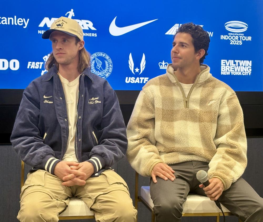 Kerr Drawn To Millrose Because Of 'The Energy In The Stadium' Story and Photos by David Woods for DyeStat NEW YORK – Yared Nuguse nearly broke a world indoor record in each of the past two years at the Millrose Games, and Josh Kerr did break one a year ago. So it would not be astonishing if one of them Saturday runs to a world record in the Wanamaker Mile at the New York Armory. VIEWING INFO FOR SATURDAY'S MILLROSE GAMES At the same time, the time is not everything. Nuguse, for one, said he does not want to jinx it. “I’ve always been very close to this record,” he said Thursday at a premeet news conference. “So this year I’m hoping to focus more on winning, especially given the competition in the race. Hoping that the record just kind of happens." In 2019, Ethiopia’s Yomif Kejelcha broke a 22-year-old world record with a time of 3:47.01. Next two fastest times ever are 3:47.38 in 2023 and 3:47.83 in 2024, both by Nuguse at the Millrose Games. Kerr moved to the 2-mile in 2024 to break a world record. In his Scottish homeland, he then beat Nuguse to win gold in the 3,000 meters at the World Indoor Championships. They were on the podium at the Paris Olympics, too, taking silver and bronze in the 1,500 meters, respectively. In their careers, Kerr and Nuguse are 3-3 in six races at 1,500 meters or a mile. Five different Americans broke the world indoor mile record between 1962 (by Jim Beatty) and 1978 (by Dick Buerkle), but none since. No runner has broken the world record in this race since Denmark’s Gunnar Nielsen did so at Madison Square Garden with a time of 4:03.6 in 1955. Most recent American to break the world record in the Wanamaker Mile was Gilbert Dodds with 4:05.3 in 1948. Nuguse could become the first miler to win three straight since Bernard Lagat’s six in a row (2005-10). The 25-year-old Notre Dame graduate from Louisville, Ky., has not raced since finishing sixth in the 1,500 in the Diamond League final last Sept. 13. He said recent workouts supplied evidence he is “pretty sharp,” considering the calendar. It is a seven and a half month season, and he wants to peak for September’s World Championships. “Coming into this race, I really do want to repeat, and really do just want to have a good start to my indoor season and my 2025 season as a whole,” he said. Kerr conceded he races sparingly, and only in meets that excite him. Millrose is among them. “We get blessed with a lot of amazing tracks. But it think it’s the atmosphere that is the reason this meet is so good every year,” he said. “I don’t think it’s the track. It’s the energy in the stadium. And it was the same in Paris. “I would expect some pretty big results across the board.” Also in the mile will be 21-year-old Hobbs Kessler, fifth at the Paris 1,500, and Australia’s Cameron Myers, 18, who broke the under-20 world record of 3:53.12 on Jan. 25 at the Armory. Men’s 3K: Fisher, Hocker eye each other . . . and 5Ks Cole Hocker, Olympic champion at 1,500 meters, and 5K/10K bronze medalist Grant Fisher meet in the middle at 3,000. Fisher is 3-0 against Hocker, beating him in the Millrose 2-mile last year (behind Kerr’s world record). “Racing the Olympic gold medalist is different than racing Cole two years ago,” Fisher said. Fisher is fit, having run a PB of 3:33.99 for 1,500 Sunday at the New Balance Grand Prix in Boston. Hocker said if he has a weakness, it is at distances longer than a 1,500. “My long runs have been looking a lot better than last year,” Hocker said. “Some of the best ones of my career.” Coincidentally, both are aiming for indoor 5,000s at Boston University later in February. Fisher called the track there “a trampoline.” He is targeting Woody Kincaid’s American record of 12:51.61 on Feb. 15. Ethiopia’s Kenenisa Bekele has held the world record of 12:49.60 since 2004. Hocker and training partner Cooper Teare are to race in a last chance meet Feb. 15, aiming for the World Championships standard of 13:01. Hocker failed in a bid to make the Olympic team at 5,000 last year. “Not many people in the world have my 5K/1,500 double,” Hocker said. “I want to continue to build on my 5K side.” Anyone going to nationals/worlds? Americans such as Noah Lyles, Hocker, Nuguse and Fisher have already announced they would skip the upcoming U.S. and World Championships indoors. Nationals are Feb. 22-23 at Staten Island, N.Y., and worlds are March 20-22 at Nanjing, China. It is doubtful Team USA can approach its 2024 haul of 20 world indoor medals. Masai Russell, Olympic champion in the 100-meter hurdles, said she would run the 60 hurdles at nationals but not worlds. Elsewhere, Australia’s Jessica Hull and Bahamian hurdler Devynne Charlton are aiming for Nanjing. Hull is racing 3,000 at Millrose to achieve the necessary 8:33 standard. Charlton last year lowered the world record in the 60 hurdles at both Millrose and worlds. Contact David Woods at dwoods1411@gmail.com. Follow him on Twitter: @DavidWoods007. More news |