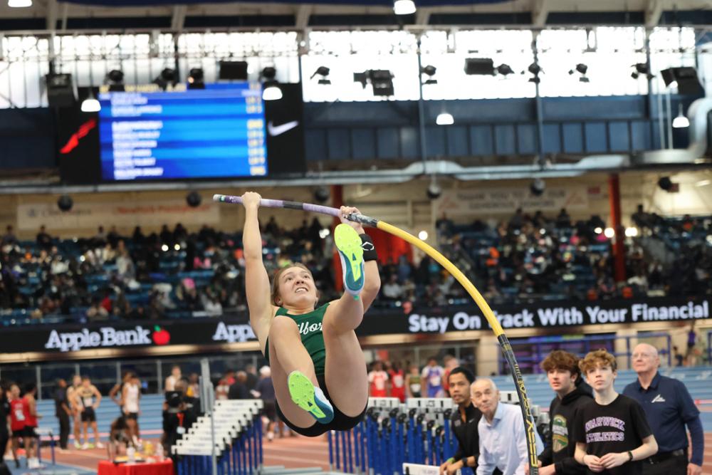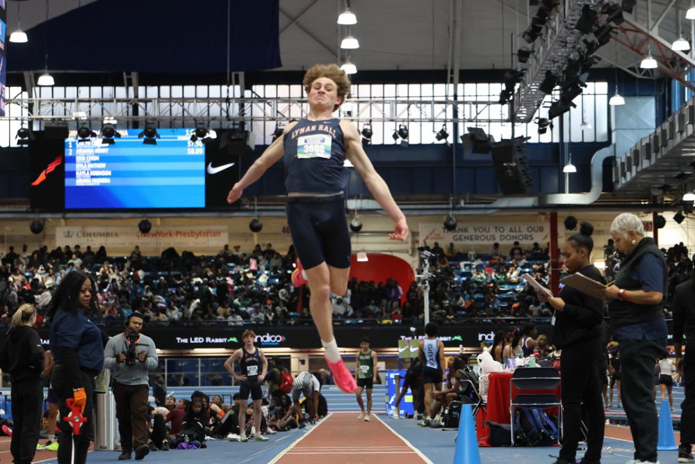 Apple Bank Hispanic Games The Nike Track & Field Center at The Armory, NY MSR Finishline Photos from Ron Knapp Meet Photos from John Nepolitan Connecticut teams have been taking advantage of the Armory’s lightning fast track for the past three decades and several teams once again made the trip down to northern Manhattan to compete against some of the best athletes on the northeast coast. In her 2nd meet of the season Guilford’s Kaylin Diglio competed in three events but shined in the brightest on the pole vault, her specialty. She made five consecutive attempts without a miss in the and then the bar was moved up to the CT state record height of 12-9.0. An unfortunate break in competition for the next 15 minutes came just before her final attempts as the track was cleared while a small electrical fire was extinguished in the lights above the long jump pits. While the sophomore didn’t make that height because she had no misses, she came away with the win at 12-3.0 which is only three inches off her PR she set just before Christmas in Boston. She also ran personal bests in the 55m hurdles (8.92) and 400m (1:01.63). Besides the pole vault, we are also on the state record watch in the girls 55m hurdles. Bloomfield’s D’Asia Duncan continues to drop her time against nationally ranked competition as she took 4th in a US #11 time of 8.14. Her time moves her up to number five on CT’s all time top performance list, not too far from Tess Stapleton’s 7.88 set in 2020 just before the Covid shut down. The All American heptathlete also finished off the meet with a 25.1 relay split to help the WarHawks to a state leading 1:46.25 time in the 4x200m. The Rich brothers are at it again. Lyman Hall twin brothers Aaron and Ethan Rich are getting plenty of national recognition. Aaron went over 24 feet in the long jump for the second time in a week. He won with a distance of 24-0.5 with his brother taking 3rd and tying his PR 22-6.25. Aaron is already ranked #1 in the country with his performance at the U.S. Marine Corps Holiday Classic last week and Ethan is in the top 50 nationally. In the high jump, both cleared 6-6 with Ethan taking 2nd and Aaron finishing in 4th place overall. In Ethan’s 3rd event he triple jumped 44-8.25 with his brother Aaron testing his raw speed running 6.74 in the 55m dash earlier in the day. Windsor’s Shelldon Simpson II is showing off incredible range this winter. He has already run state leading times of 6.45 in the 55m and 34.12 in the 300m. On Saturday, he moved up to the 400m and took over the state leading time in that event as well, finishing 2nd in 48.77 to become ranked 12th in the US and take over the 5th spot on the CT all time top performance list from Cromwell’s Nassyr Andrade. While Simpson is more likely to stay in the 300m and Andrade is likely to move up into the 600m for the championship season, it should be very exciting to see who comes out on top in the spring season when both can face each other in the one lap event. Bloomfield girls continued to show off their depth in the long jump with Vanessa Agyemang going over 18 feet for the second time of the season, winning with a distance of 18-4.0, only 3/4 of an inch off her season best. The senior also finished 11th in the 55m hurdles, tying her season best of 8.43 and ran a leg of the 4x200m with Duncan, Jahniya Barclay and Saphyr Brown. April Nathaniel had her season best of 17-6.0 to finish 5th spot in the state this season with only three Bloomfield teammates in front of her. There were three nationally ranked performers competing on the pole vault runway on Saturday led by NY state record holder Luke Beattie. The senior won at 16-3 with his Warwick Valley teammate Klaus Lindenau tying Daniel Hand’s Sean Arms at 14-3. Arms has already cleared 15-6 this winter which is only four inches off the state record held by Chris Rough and Joe Fogarasi from the 2015 New Balance Nationals Indoor Championships. In the distance events, defending New England champion Sam Leone of East Lyme continues to gain experience against some of the best in the nation. He finished 7th in the Invitational mile that was won by NY state leader and Federation cross country champion Claudel Marc Chery in a time of 4:12.53. Leone passed two runners in the final 100m of the race and improved upon his CT leading time, running 4:17.77. Also in the same field was New Canaan’s Ryan Monohan who broke another school record, running 4:20.62 to take over the #2 spot in CT. In the girls 3000m, vastly improved Sarah Bogdan of Staples took 2nd place, running a time of 9:59.51 and cracked the CT all time list for the first time. She is less than a second behind Tess Sherry’s time from last year and moves her up to 13th nationally. This is over a 40-second improvement from her time last year at the Yale Invitational.