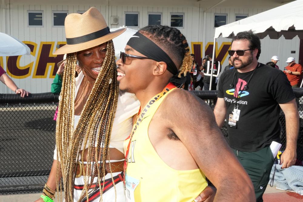 More Than 'Ari's Little Brother'A DyeStat story by Dave Devine Meet photos by Kirby Lee/Image of Sport and Ken Martinez ____________ Here’s Gabe Tyler, preparing to race. He’s pacing the lane line, shaking out his legs, scrutinizing his starting blocks. Making precise, almost fussy adjustments to the pedal spacing. Gauging the distance, the angles, the tightness of the set. Most sprinters do this, the assurance of a routine. He’s already listened to his pump-up soundtrack, a collection of walkout songs from his favorite WWE pro wrestlers. He’s performed his visualizations. Cleared his mind. Internalized the latest feedback from his coaches. Arms and legs at the same time. One motion. Out like a jet. His hair is in tight braids under a black Nike headband. He’s got his wristbands, his watch, his immaculate race day uniform. Swag, drip, fire ‘fit, however you want to say it — his coaches will tell you: when Gabe Tyler hits the oval, he’s always looking good. And across his chest, one of the most recognizable names in high school athletics, abridged from the formal designation — Long Beach Polytechnic High School — to the familiar, all-caps moniker: POLY. A California high school renowned for shaping teenage speedsters. And for Gabe, it’s not just the school name he’s standing on, he’s got pedigree on his side, too. His older sister, Ariana (Washington) Murphy, is an Olympian and a world champion in the 4x100 meter relay. His brother-in-law, Clayton Murphy, is an Olympic bronze medalist over 800 meters. There’s velocity in the family. And now Gabe is making his own mark on the track. Head clear, he waits for the familiar phrase: Runners to your mark. For most sprinters, it signals the continuation of the routine — more leg shake-outs, a gradual backing into the blocks, fingers bridged behind the starting line, body settled to stillness on a single knee — but for Gabe, there is a noticeable difference. He can’t settle his knee to the track. His race begins in the “set” position. That’s because Gabe’s legs are restricted by cerebral palsy. Once his spikes are pressed into the blocks, he’s unable to lower down. He is, by that point, already poised, muscles taut and ready to fire, shins parallel and quivering. When the second command arrives — Set! — hopefully without much delay, Gabe levers his hips a few painstaking inches higher, battles tight muscles, obstinate tendons and accumulated scar tissue, and waits for the pistol to sound.