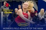 CORTLAND, N.Y. Junior Brianna Coon (Plattsburgh, N.Y. / Plattsburgh) of the Plattsburgh State women's track and field team has been named the State University of New York Athletic Conference (SUNYAC) Athlete of the week for women's field events.