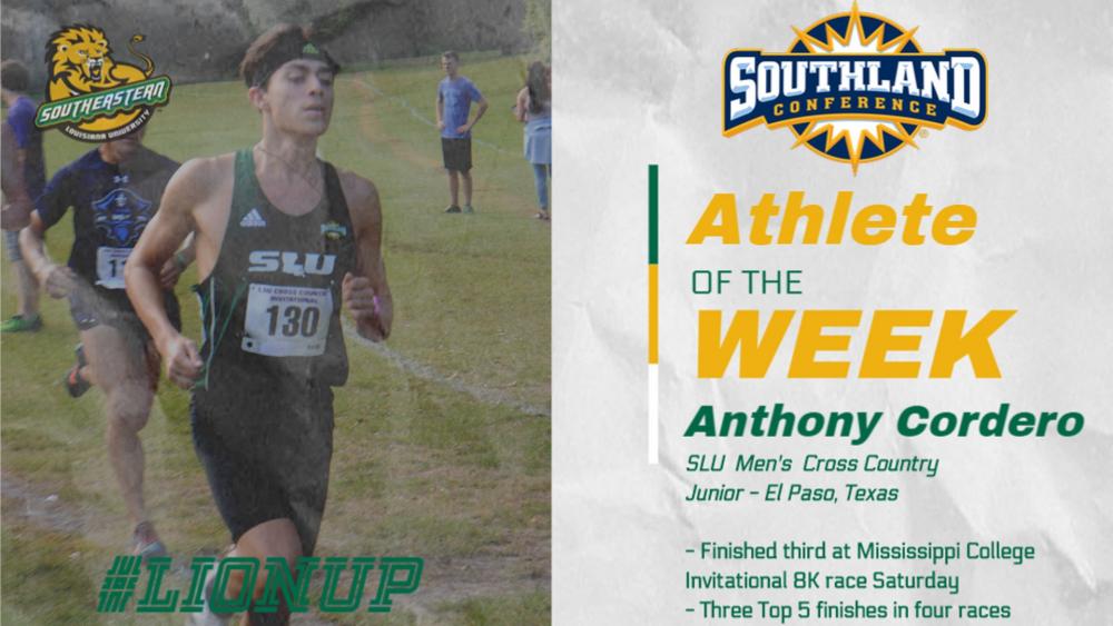 After a third place finish in the Mississippi College Invitational Saturday morning, Anthony Cordero was named Southland Conference Athlete of the Week for the Southeastern Louisiana cross country team, the league office announced Tuesday. Read the full article at: lionsports.net