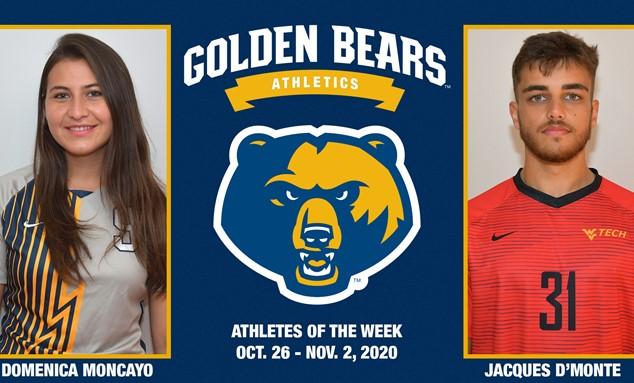 Golden Bear Athletes of the Week for October 26 - November 2, 2020 were announced Monday by the WVU Tech Athletic Department. Senior Domenica Moncayo (women's soccer) and freshman Jacques D'Monte (men's soccer) headline this week's honors. Read the full article at: goldenbearathletics.com