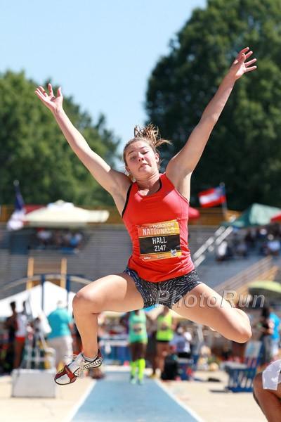 Long Jump: Championship girls: Kate Hall ME, 22-5 USR Championship boys: Christopher McBride GA 25-1.25 Emerging Elite girls: Kaitlin Salisbury NJ 18-7.25 Emerging Elite boys: Frankie Richard NJ 21-11.75 Freshman girls: Breana Gambrell PA 18-5.75 Freshman boys: Austin Kratz PA 21-2.75