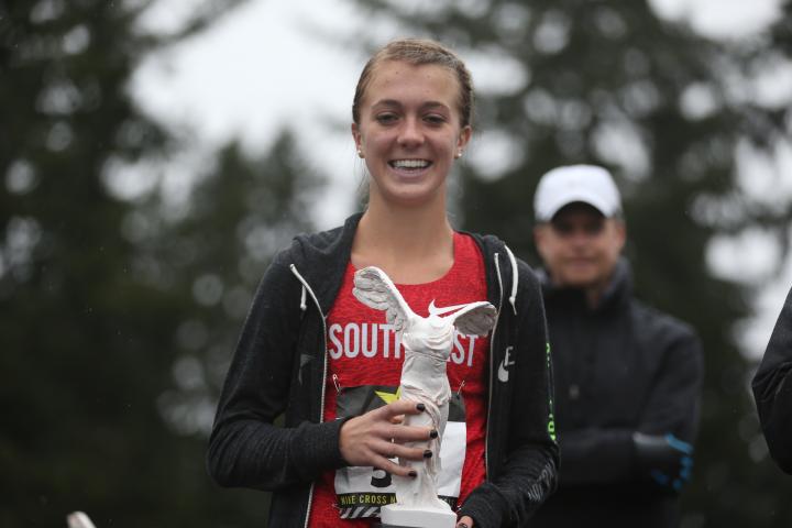 In 2015, Rainsberger reigned in the rain. She surged away from everyone after two miles and no one was able to keep up. She won by the largest margin in meet history (13.4 seconds) with 16:56.8. Ella Donaghu of Portland's Grant High, calling on the experiene gained from two previous NXN races, outkicked everyone in the chase pack to place second in 17:10.2. More news |
