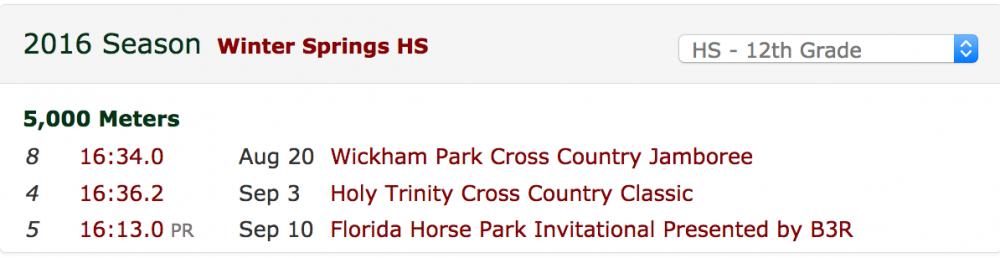The 2016 Hagerty Invitational hosted by Hagerty High School will feature 25 teams and over 900 athletes from surrounding Central Florida under the direction of Hagerty Athletic Director, Jay Getty. Varsity Girls Individuals For those hoping to see a fully loaded Winter Park Wildcat team led by Junior Rafaella Gibbons, you'll have to wait until Coach McWilliams unleashes her top squad at the FLRunners Invitational in a few weeks. "Coach Mac" let us know the plan is to hold out her top 4 runners this week after split duty last week, as the Varsity travelled to Georgia for the Coach Benson Double Dip Invitational, and the Junior Varsity competed at the Florida Horse Park Invitational. This sets up a very intriguing battle up front with runners we've seen over the last few weeks race very competitively. Holy Trinity's senior stand-out, Samantha Folio, has had a great season so far. Her senior campaign is off to a rousing success. Wins at the Wickham Park Jamboree and the Deland Invitational showed she is in 19 flat shape early. Her only loss so far this season just happens to be to the state leader, MCC's Amanda Beach at the Holy Trinity Invitational where she finished 2nd. An off week last week at Astronaut for ACTs should be just what the doctor ordered as she will face the likes of Lake Brantley's super frosh, Ashley Klingenberg, and Winter Springs super frosh, Elayna Bahr and several others in the field. As we've seen, Folio is not weary of leading early. It would behoove the rest of the field to keep it close early on and hope the race develops in the latter stages. If that's the case, keep an eye on Klingenberg who is gaining valuable race experience to go along with her 2:14 800m speed.