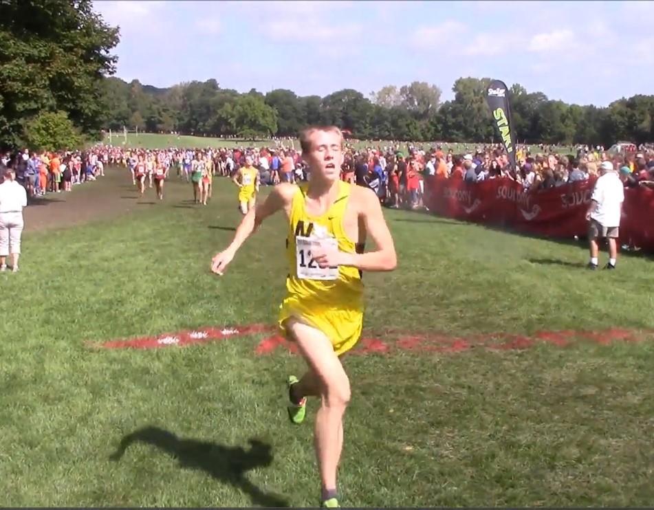 Above: Josh Molloway leads his Neuqua Valley teammates to the finish placing sixth overall (Mike Newman Photo)