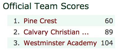 Pine Crest, FL - Team Time (1st 5) 1:26:34.8 | Spread (1st 5) 1:20.0 |