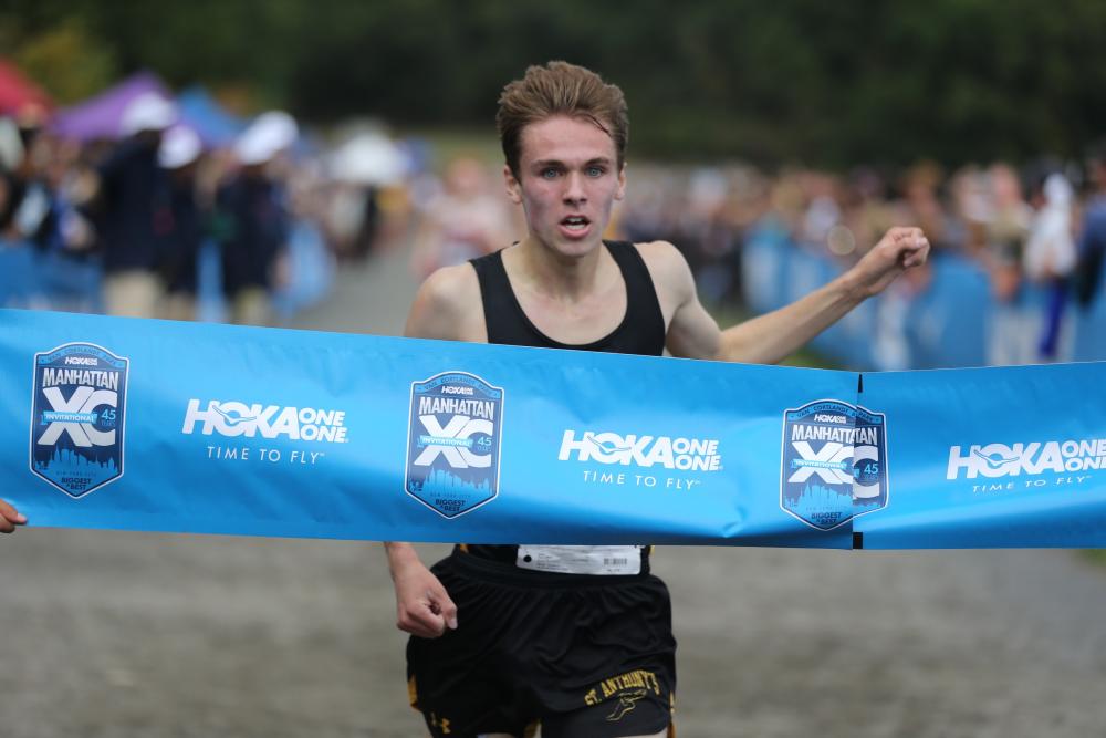 Gatewood emgerges from the pack in Boys Eastern States By Brian Towey for DyeStat THE BRONX, N.Y. -- Nearly one year ago at New York's Van Cortlandt Park, senior Mason Gatewood of St. Anthony’s NY had a race that gave him the confidence that he was a cross country runner. On Saturday at the same venue, Gatewood delivered on that promise when he won the Eastern States Championship in 12 minutes, 17.4 seconds. "That was my breakthrough race," said Gatewood of his performance at the CHSAA Intersectionals in 2016. "Then I believed. I think my coach (Tim Dearie) believed it all along, that I was more than a half-miler." It was a rugged affair at the HOKA ONE ONE Manhattan Invitational (2.5K course) featuring many of the Northeast's top teams -- among them Christian Brothers Academy NJ and Fayetteville-Manlius NY -- as well as a number of top teams from the Southeast, like Green Hope NC and The Bolles School FL. A pack of 12-15 runners emerged at the mile mark on the course's rolling, forested course, including Gatewood, junior Charles Hicks from The Bolles School and senior Nathan Lawler of Pittsford-Mendon NY. "I had to push around to get into the front pack," said Hicks, a 2016 Foot Locker finalist who showed a gash on his right shin following the race. When the pack emerged from the hilly loop onto the race's final, flat, 800, Hicks had the lead. But the group was jumbled. Pulling down the final straightaway, Cameron Ponder of Mount Tabor NC led with about 150 meters to go. Gatewood began reeling him in, easing past Ponder for the win. "My coach said to me a couple of weeks ago, 'I think you can run with the top guys,'" said Gatewood, who finished second Sept. 23 at the Ocean State (R.I.) Invitational and won the St. Anthony's Invitational on Oct. 6. "I think that's when the seed was planted." Ponder finished second in 12:17.4. Lawler was third in 12:20.7, followed by Rusty Kudych of Neshaminy PA (12:24.1), Hicks (fifth, 12:30.2) and Silas Derfel of Ithaca NY (sixth, 12:36.1). Other notables included the McDonogh School's Dalton Hengst (ninth, 12:44.3) and Bishop (Pa.) Shanahan's Josh Hoey (10th in 12:46.5). Christian Brothers Academy won the team race with 136 points, led by Brian Hill's seventh place finish in 12:40.5. Fayetteville-Manlius was second with 149 points and Green Hope third with 180 points. "We're starting to peak at the right time, the championship season," said Tim McInerney, a member of CBA's top five. "Brian Hill is leading the way for us. He works harder than anyone in the state." In a loaded field, other team finishers included Niskayuna NY (fourth,192 points), Kingsway NJ (fifth, 211 points), Corning-Painting Post NY (sixth, 220 points) and The Bolles School FL (seventh, 224 points). North Rockland (N.Y.) sophomore Katelyn Tuohy stole the limelight from a banner field in the Eastern States Championship by running 13:21 out of the girls Varsity C race to smash the course record by 32 seconds. She would have won the girls Eastern States by over 50 seconds. New Yorkers John Jay-Cross River won the team title in the race with 70 points followed by Tatnall DE with 134 points and Smithtown East NY at 136 points. in the girls Eastern States race, Fayetteville-Manlius sought a fourth straight Manhattan Invitational crown, and ninth overall. The Hornets did it in resounding fashion. Sophomore Claire Walters led a 1-2-3 finish, winning in 14:13.2. She was followed by senior Sophie Ryan (second, 14:18) and sophomore Phoebe White (third, 14:20.1). F-M tallied 22 points in the win over Liverpool NY (127 points) and The Bolles School FL (152 points). "I was very pleased with how the girls ran because we straightened things out after a lackluster effort at our invitational one month ago," Fayetteville-Manlius coach Bill Aris said. "We got a good month of training in and we did well." During the awards ceremony, Aris picked former F-M runner (Class of 2016) and current Columbia University runner Jenna Farrell out of the crowd. "Kind of reflecting back on it, it's all about priorities," Farrell said. "(Aris) prioritizes working together, working as a team, team synergy. It's not the training. We worked together. We worked for each other. It's not physical, it's mental." Senior Lydia Olivere of Padua Academy DE finished fourth overall in 14:24.1. Senior Abby Green of Walter Johnson MD finished fifth in 14:28.8. Warren Hills NJ junior Alexa Westley was sixth in 14:29.9. Other top team finishers included Padua Academy (fourth, 155 points), Walter Johnson (fifth, 170 points) and Niskayuna NY (sixth, 181 points). In the boys Varsity B race, junior Noah Tindale of Guilderland NY won in 12:49.7, holding off David Vorbach of Nashua (N.H.) North (second, 12:50.3). "I went out a lot harder than usual," said Tindale, who is aiming for an NXN spot. "Usually I go out behind the first runner. ... And I reached for my 400-meter kick. That's what I do well – 400, 800 meters on the track." Guilderland won the team title with 93 points over Taylor Allderdice of Pittsburgh, Pa. (121 points) and Nashua North NH (121 points). In the boys Varsity A race, junior Tyler Schwinn of Red Bank Regional NJ won in 13:12.5 over Ben Brugger of Upper Dublin PA (13:15.1). Red Bank won the team title with 105 points over Chariho RI (112 points) and Morristown NJ (126 points). In the boys Varsity C race, Matt Politis of Pearl River NY won in 12:53.6 over Colin Fitzpatrick of Lowell MA (12:59.5). Lowell won the team title with 43 points, running 2-4-10-11. Boyertown (Pa) finished second with 63 points, while Pearl River was third with 144 points. In the boys Varsity D race, Liam Higgins of Goshen NY edged out Connor Nisbet of Wilmington Friends DE 12:33.2 to 12:34.2. Tristan Shellgren of St. John's Prep MA was third in 12:45.3 and Patrick Tuohy of North Rockland was fourth in 12:55.5 Cornwall (N.Y.) won the boys team title with 94 points over St. John's Prep (116 points) and Baldwinsville, N.Y. (140 points). In the bo
