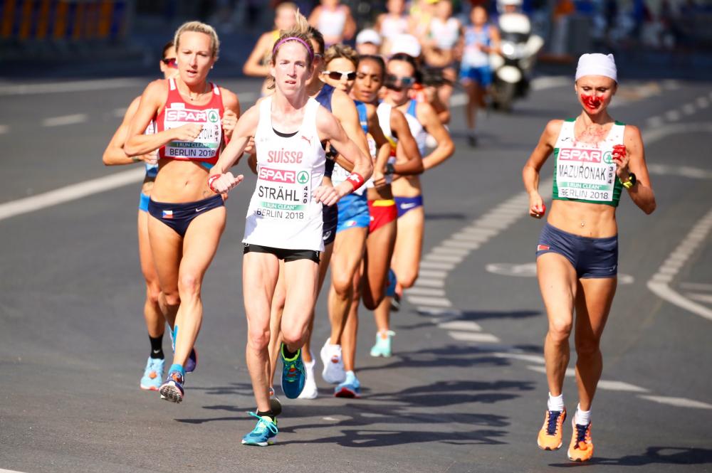Nepo: Volha Mazuronak (Belarus) came around the first loop (just past six miles) of the European Championship marathon in Berlin with her face covered in blood. Mazuronak later told the media she got a bloody nose early on and wiping the blood away only made it worse. By the time she crossed the finish line in first she was able to sponge off the blood and was cleaned up at the finish.