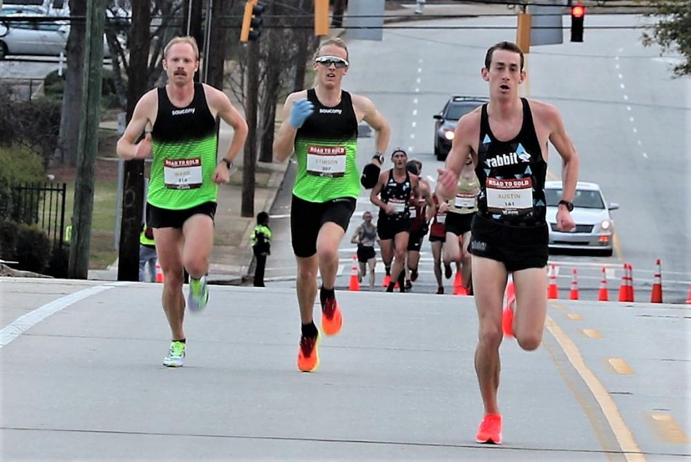 PHOTO: Brogan Austin on his way to winning the 2019 Road to Gold road race in Atlanta, Georgia, on March 2, ahead of Jared Ward and Parker Stinson (photo by Jane Monti for Race Results Weekly)