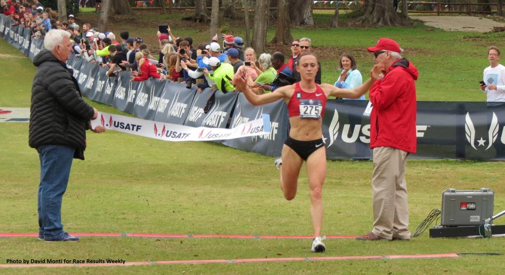 PHOTO: Shelby Houlihan winning the 2019 USATF Cross Country Championships on February 2 in Tallahassee, Florida (photo by David Monti for Race Results Weekly)