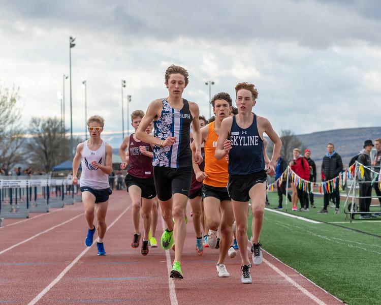 Two Weeks Later, The Snow Canyon Invitational Feels Like 'A Gift' Skyline UT's Thomas Boyden Ran 4:05.16 For An All-Time Utah Best In the 1,600 Meters And Edged Stansbury's Carson Belnap, 8:50.65 To 8:51.99, In The 3,200 By Doug Binder, DyeStat Editor Photos Courtesy Jim Ballard Thomas Boyden sat in his usual spot in the Skyline High (Salt Lake City) cafeteria and was eating lunch when he got a text from the meet director of the Texas Distance Festival. The Saturday event that Boyden had been training for the past month was canceled. By the morning of Thursday, March 12 everything was changing in a hurry and the ballast propping up high school track and field was beginning to crumble. The night before, Rudy Gobert of the Utah Jazz had tested positive for the Coronavirus (COVID-19) prior to tip-off in Oklahoma City against the Thunder. The NBA season was quickly stopped. High school track and field athletes around the country soon learned that New Balance Nationals Indoor in New York City was nixed and began scrambling to cancel flights and hotel reservations. Boyden made a quick decision to pivot rather than pout. He brought up RunnerCard, Utah’s go-to meet registration and results site, on his phone, to see if there was another meet he could get into. He found one, 300 miles away and starting the next day: The Snow Canyon Invitational in St. George. Maybe that one is still on. Boyden went to his coach, Thomas Porter, and told him the news. The Texas meet wasn’t happening. There would be no way to test what they had been working on throughout the winter, training that had Boyden in sub-14 minute shape for 5,000 meters. Boyden asked his coach if he could possibly squeeze into the Snow Canyon meet instead. Yes, as it turned out. Porter made the call and entered Boyden in the 1,600 meters Friday afternoon and the 3,200 meters Saturday morning. Boyden, a Stanford recruit, checked in with the group chat that connects about 80 of the top boys in the state, and informed Carson Belnap of Stansbury and Easton Allred of Corner Canyon that there was an opportunity to race, still, in St. George. Belnap, who was due to fly to New York that day, switched gears and decided to sign up for Saturday’s 3,200. In might not be NBNI, but a matchup with Boyden was an opportunity he couldn’t pass up.