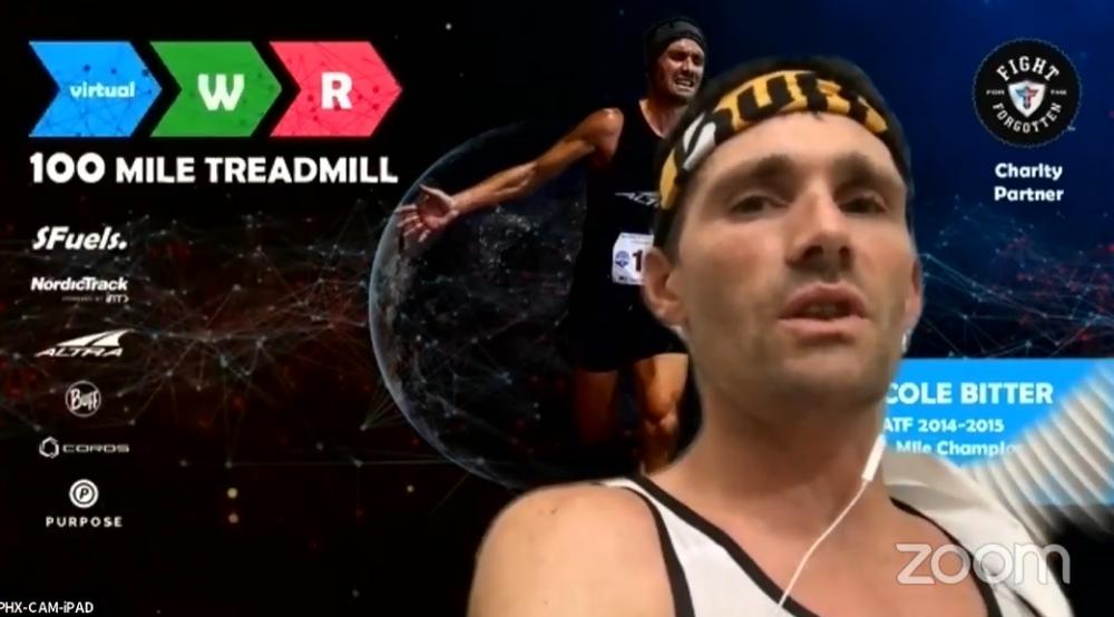 PHOTO: Screen imaged of Zach Bitter after his 12 hour and 100 mile treadmill records