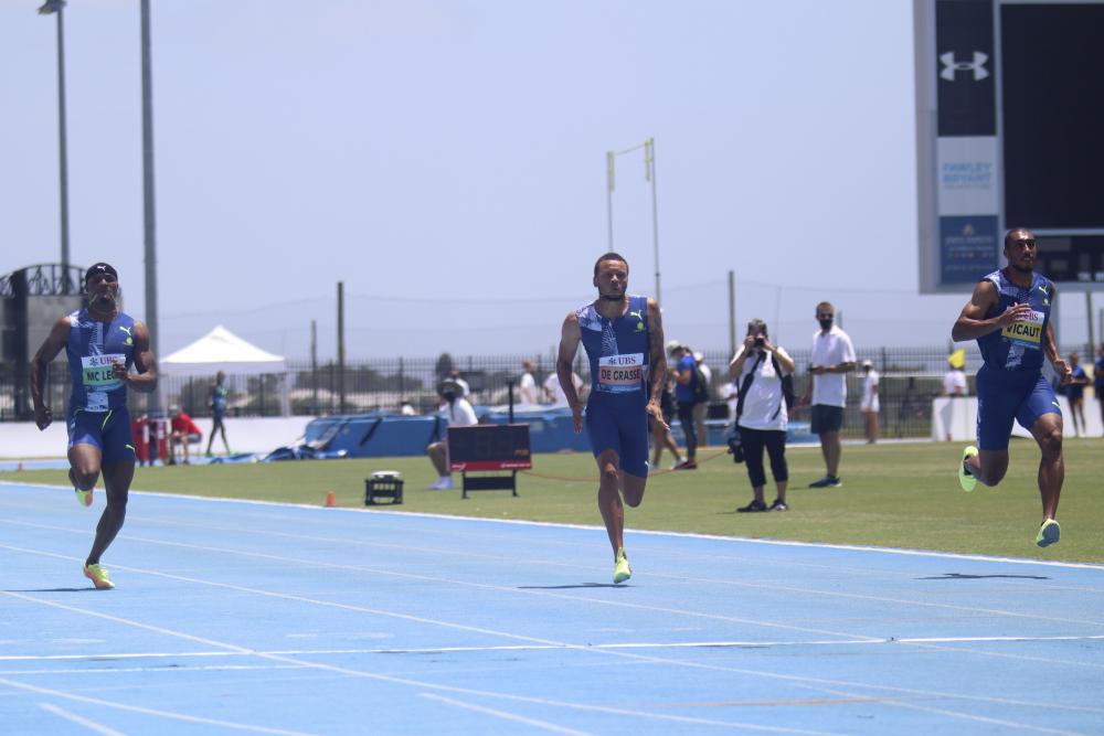 At the renovated Hilmer Lodge Stadium at Mt. SAC in Walnut, Calif., the American trio of Candace Hill, Tianna Bartoletta and Allyson Felix closed out the event by running a 3x100-meter relay in 32.25 seconds – faster than simultaneous races going on in Switzerland and The Netherlands. “I think we see what a hardship everyone is going through, and we just want to bring a little bit of joy, pause a moment and appreciate the sport,” said Felix, the only double winner in the overall competition, including the 150-meter race. “This is fun. I can’t wait until we can do it in person, for sure.” Hill, 21, was 13 years old when Bartoletta and Felix ran the first two legs of the American 4x100 relay that set the world record by clocking 40.82 at the 2012 London Olympics. “At first, I was really nervous because they were on the world record-breaking 4 x 100, so I was like, I can’t mess this up and I have to get the baton around,” Hill said. “It is a nice opportunity to run with them and I hope to be like them one day in the future.” Bartoletta ran the second leg, setting up Felix on the anchor, relying on their history together with no opportunity to practice baton passing ahead of the race. “We know each other well, which made this race a little easier,” Bartoletta said. “I was really happy to get the call for this 3 x 100, and see it all coming together. I'm really grateful for training, and this just validates the good progress I've been making.” Also at Mt. SAC, Georganne Moline won the 300-meter hurdles in 39.08 seconds, the second-fastest time ever produced by an American female athlete – trailing only the 38.90 achieved by Sydney McLaughlin at the 2017 Arcadia Invitational – and No. 10 all-time in the world. It marked the first competition in more than 500 days for Moline, who had foot surgery in August, and the first hurdling race of any kind since she ran the 400-meter hurdles in Switzerland at the actual Weltklasse Zurich Diamond League meeting Aug. 30, 2018. “Coach (Fred) Harvey and I just tried to treat it as a practice as much as we could. And there was a lot of anxiety going into this race because it’s been a year and a half for me, regardless of no fans or anything. I was able to calm myself down, I just executed the way I wanted and then one of the hurdles, I just didn’t trust myself coming home and it totally stopped my momentum. So that’s a way to learn, and you know, move forward,” Moline said. “I promised myself I would never take another race or opportunity for granted. And that’s exactly what I intended to do today and that’s what I did. I’m grateful to be here, regardless of the situation. I want to thank Zurich for this amazing opportunity, because this is so cool and I’m so fortunate just to be out here racing again, so I’m just so happy they allowed me to do this.” Moline was faster than Swiss athlete Lea Sprunger, who clocked 39.25 seconds in Zurich, and Zuzana Hejnova of the Czech Republic, who ran 40.97 in The Netherlands. Hejnova still boasts the fastest 300 hurdles time in history, running 38.16 in 2013. In a race that was intentionally too short, Andre De Grasse of Canada won the 100-yard dash in 9.68 seconds against two sprinters – Jimmy Vicaut of France and Omar McLeod of Jamaica – who were on the track with him separated by lanes in between in Bradenton. They ran into a -3.4 m/s headwind. “I felt a little rusty, I felt a little bit out of shape and my fitness wasn’t really there, but I’m happy to get a run in,” De Grasse said. “It’s been a tough year with the pandemic and everyone’s just trying to get a couple of races in somehow, so I’m happy with it and I’m looking forward to trying to get more runs this year and just trying to improve. The last Canadian to run the 100 yards was, I think, Harry Jerome in the 1960s and he ran like 9.4, so I was just trying to run faster than that.” In one of three field event contests, Portugal's Pedro Pablo Pichardo outperformed Americans Christian Taylor and Omar Craddock in the triple jump. Pichardo had a best mark of 57-1 (17.40m) with a wind of +2.3. Taylor jumped 56-8 (17.27m) on his final attempt with a +4.3 wind at his back in Florida. Craddock managed a best of 55-1 (17.04m) at Mt. SAC. The women's 150-meter dash, spread across three time zones, produced a winning time of 16.81 for the 34-year-old Felix. Bahamian star Shaunae Miller-Uibo ran 17.15 seconds (in Florida) and Mujinga Kambundji clocked 17.28 at home in Switzerland. Felix and Miller-Uibo both ran into headwinds, while Kambundji did not. “It was very strange and I feel sort of like practice but not even because there’s really no teammates or anything. It’s hard to challenge yourself, so I think that’s the big thing with running solo,” Felix said. “I missed (having fans). I don’t think there’s anything that can compare to that. But I love this sport and so any chance to get out here and run, it’s been a long time, so I’m all about it.” Sandi Morris achieved a second-attempt clearance at 15-3.50 (4.66m) in her season opener in the pole vault to defeat virtual competitors Angelica Bengtsson of Sweden and Greece's Katerina Stefanidi, who no-heighted at Mt. SAC. “Surprisingly, the wind was mostly a tailwind, then it would be a strong cross for a little while at the end, so I was kind of struggling with it at the end. But if you’re patient and you wait on it, it would turn to a tail, so I had some (attempts) where I got lucky and some where I wasn’t so lucky,” Morris said. “This was a rustbuster for me. I haven’t jumped from my full approach since the indoor season, so I was kind of using this as a time to get off the ground, to get some jumps under my belt and have some fun. This is a very unique situation that we’re in, and I’m very lucky to have an opportunity to jump, so I’m extremely happy that I had this opportunity.” Sam Kendricks cleared