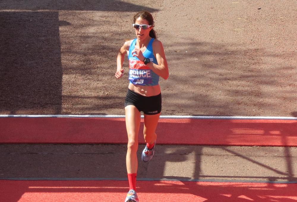 PHOTO: Steph Bruce finishing the 2018 Virgin Money London Marathon (photo by Jane Monti for Race Results Weekly)