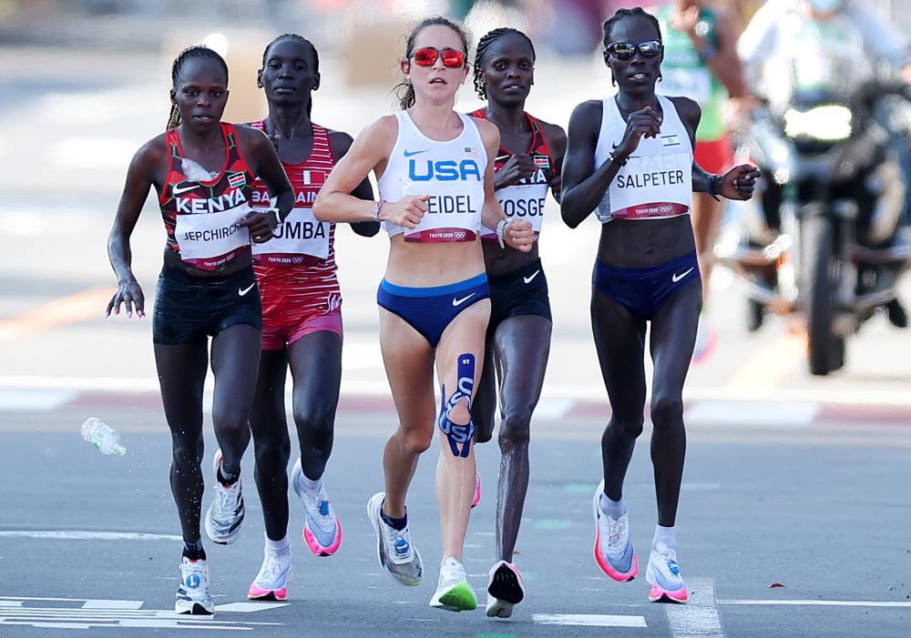 Yes, yes, yes…It was Molly! And dare I say “our” Molly. With no less pluck, grit and daring-do than Joan Samuelson in her historic 1984 victory in the first women’s Olympic marathon (the Norwegians Ingrid Kristiansen and Grete Waitz were Joanie’s “Kenyan” rivals of the day), Seidel achieved the thought-to-be-impossible merely by staying up front, never wavering, never looking bad or in trouble, never looking like she was suffering, looking just as good if not better than the Kenyans themselves. Never mind a medal. That was more than impossible; a medal had all the logic of a presidential election conspiracy theory. I tremble at the image, fresh in our minds, at Seidel’s finish as though it was preordained. I shudder at the ease of it: the look of ease, of command, of subduing history, of dismissing three of the fastest women’s marathoners ever — yes, of course, the trio of Kenyans in the field of 88 starters. I am bewildered at the denial of suffocating heat that was not kind even to Kenyans with a million miles in their legs since running barefoot to school when barely out of diapers. How did Seidel do it? I have no idea. She had no cutting edge training program. She didn’t do anything unusual to acclimate to the heat. There was no hi-tech wizardry in her approach. She just ran. That may be the best part. A “regular” runner did this, oh joy to the world! In her NBC Olympic marathon commentary, the astute Kara Goucher said we all now live in Eliud Kipchoge’s World. I would add, we now also live in Molly Seidel’s Moment. The moment may take some time to settle in. Let it breathe, let it percolate. What possessed this woman who would have surprised many by finishing in the top 10; we expected the anguish of others, not a happy face emoji across the line. What depth of character emerged? In what field of study can we find answers? Seidel said she wanted “to stick her nose in.” Not good enough. We will want more. Molly, can you help us out? You studied anthropology and environmental science in college. Teach us. One thing we’ve learned is that to de-mystify the Kenyans you must run with them. The Kenyans remain the model, but instead of succumbing to their well-deserved throne, you, well… stick your nose in. Courtney Frerichs did it in the 3,000-meter steeplechase with a bold, even defiant, surge and wound up with the silver medal — which, when you think about it, was one of the best come-throughs for the American squad and much more than an historical footnote. Frerichs outran the Kenyan bronze medalist Hyvin Kiyeng, a former world steeple champion who took silver at Rio in 2016 as well as the daunting world record holder Beatrice Chepkoech, who on this day could do no better than seventh. It took a Ugandan national record by Peruth Chematai to beat Frerichs. In assessing the fields when the major championships arrive, shall we start to consider throwing PRs out the window, especially when the effects of humidity in thwarting a runner’s cooling apparatus are virtually impossible to predict? Kenya’s Olympic marathon winner, Peres Chepchirchir, came into the race as the two-time world half-marathon champion and former world record holder at 1:05:16 in 2020. Her marathon best was 2:17:16. In Sapporo, she ran 2:27:20. Her countrywoman in second, Brigid Koskei, was the woman who stunned the world with her 2:14:04 at Chicago in 2019, a pace of 5:07 per mile. Her Olympic time was 2:27:36, with Seidel practically on her heels and closing in 2:27:46. The third Kenyan in the field, Ruth Chepngetich, was the defending world marathon champion from Doha with a best of 2:17:08 who earlier this year shattered the world half-marathon by 29 seconds in 1:04:02. She was one of 14 women to suffer a DNF. In her youth, Chepngetich ran 10 kilometers a day back and forth to school in two round trips. In her youth, Molly Seidel put tiny University Lake High School on the map with her 12 state titles and some alpine skiing and field hockey in the mix. A promising takeaway from the Tokyo Games is that, after a long drought, star power has returned to American track and field. Allyson Felix, who needs no introduction, got the ball rolling. Add many more: the 400-meter hurdles champion and world record setter Sydney McLaughlin, the coolest cat under untenable pressure and with a glamour all her own; her rival Dalilah Muhammad, the defending Olympic champion, who also broke the world record and offers a fresh charm to McLaughlin’s take-no-prisoners aura; the gregarious 19-year-old 800-meter champion Athing Mu, whose born-to-run visage, take charge front-running and delectable poise are qualities to savor; Frerichs, who now has an Olympic silver medal to go with her World silver and U.S. record. The list goes on: Olympic champion pole vaulter Katie Nageotte, Olympic champion discus thrower Valarie Allman, consistent world number-one shot putter and Olympic champion Ryan Crouser, 400 hurdles runner-up Rai Benjamin placing behind the Beamonesque Norwegian Karsten Warholm while also breaking the world record… And Molly Seidel. She provides safe passage for all who aspire: the high school kids from nowheresville, those sorting out the complexities of body image, the first-time marathoners, the newbies entering a fearsome international spotlight; the predicted also-rans considered lucky just to be in it. With next year’s COVID-delayed World Athletics Championships in Eugene, Oregon, the star power should only acquire that much more luster as the Americans compete on home turf. Who knows if the athletes will bask in Eugene’s cool forest breezes or whether the Death Valley heat wave that swamped the Olympic Trials in June will emerge again. Either way, I think we can expect Seidel and her American compatriots — stars and would-be stars alike — not to play it safe. # Marc Bloom has covered 23 World Championships in outdoor track, indoor track and cross-country, including se