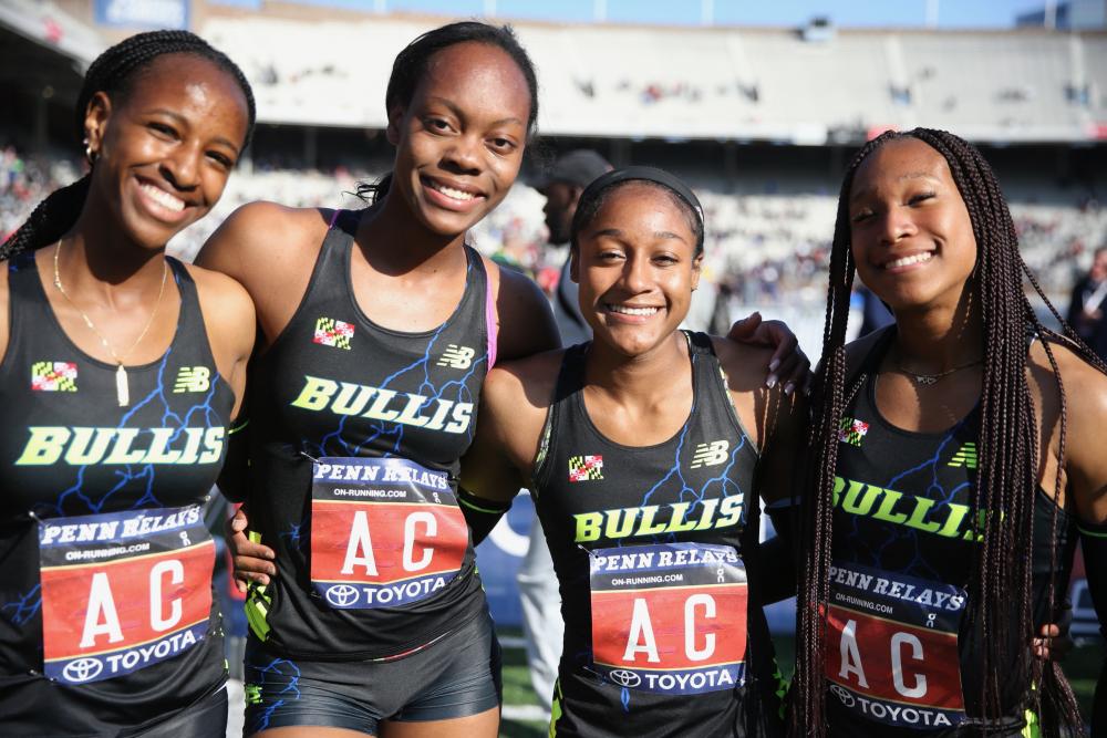 Bullis Girls Run US#1 3:40.88 4x400 On The Way To Third Overall; Ole Miss Men Win DMR; Sage Hurta Runs 1:59 By Doug Binder, DyeStat Editor Continued good weather and celebratory vibes lifted athletes all day at Franklin Field as the Penn Relays enjoyed a full day of spectacular performances. The Brigham Young women won their first Penn Relays wheel by claiming the College Women's Distance Medley Relay in 10:50.22. Courtney Wayment split 4:32.39 on the anchor leg for the Cougars. In the men's DMR, Ole Miss took the victory in a school record time of 9:29.45. Mario Garcia Romo (3:58.36) outkicked Wisconsin's Olin Hacker to bring home the win. Gary Martin of Archbishop Wood PA won the boys mile in 4:01.04, coming oh-so-close to making history in front of a huge hometown crowd. Martin received his Penn Relays watch and then had to quickly leave the stadium in order to get ready for his prom Friday night. PHOTOS by John Nepolitan and Marietta Valente The Bullis MD girls finished third in the Championship of America 4x400 relay, running a US#1 time of 3:40.88. The Union Catholic NJ boys, with Shane Brosnan on anchor, won the high school DMR title with 10:14.42. Brosnan split 4:15.21. Larry Josh Edwards from University WV pulled away from the field over the final lap and won the boys 3,000 meters in 8:20.31. Cuthbertson NC took second in the Girls 4x800 Championship of America race in a US#3 time of 9:04.67. On Athletics pro Sage Hurta won the Olympic Development 800 meters in 1:59.76, good for third-best in the world this year. Juliette Whittaker of Mt de Sales MD finished behind Hurta and a ran a US#1 prep time of 2:01.55. In the men's Olympic Development 800, Kyle Langford from Great Britain edged Vince Crisp of the District TC, 1:46.11 to 1:46.32. In the men's 3,000 steeplechase, Isaac Updike of Nike ran the second-fastest time in the world and a Penn Relays record with 8:22.96. Olympian Mason Ferlic started the race and was leading halfway through, but did not finish. Ollie Hoare anchored the On Athletic Club to a victory in the men's 4xMile relay, which clocked 16:04.69.
