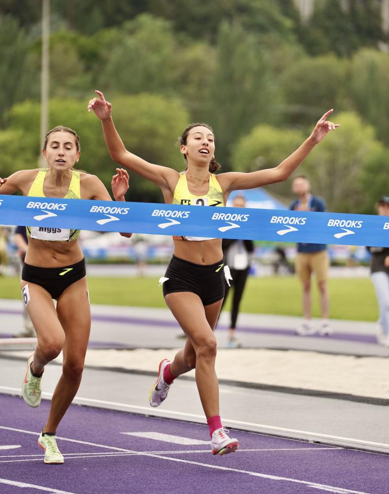 Exceptionally Fast Distance Races Highlight Brooks PR Invite By Doug Binder, DyeStat Editor Record-shattering distances races Wednesday at the Brooks PR Invitational included a fifth sub-four high school boys mile and the two fastest outdoor girls 2-mile performances in prep history in Seattle. Simeon Birnbaum, a junior from Rapid City, S.D., joined the sub-4 club with a big kick to get away from Zane Bergen and Devan Kipyego on the homestretch and hit the tape in 3:59.51. In a race that was paced through 800 meters by two-time sub-four miler Gary Martin, Birnbaum became the 17th sub-4 high school male athlete and the third junior. Birnbaum lowered his personal record by a staggering eight seconds to win the race. "It was wild," Birnbaum said. "At the beginning of the season I thought I had maybe a five percent chance to even make it to this meet. I wrote Brooks PR on my board and as a goal and I was really hype just to make it here. Obviously to win and go sub-four doesn't even feel like a dream, it doesn't feel real right now." RESULTS | MEET VIDEOS | INTERVIEWS | Zeth Peterka PHOTOS Meanwhile, Bergen (4:00.48) broke the Colorado all-time best and Kipyego (4:00.64) did the same for Rhode Island in third. Aaron Sahlman, also a junior, was fourth in 4:01.34 and James Donahue was fifth in 4:01.39, a Massachusetts all-time best. At the start of the Brooks PR meet, Dalia Frias and Irene Riggs ran away from the pack and both crashed through the 2-mile national record, pushing one another to the finish tape with times of 9:50.70 and 9:50.72. Frias, of Mira Costa CA, and Riggs, of Morgantown WV, both passed Brie Oakley's all-time mark of 9:51.35 from the 2017 Brooks meet. "These last couple of weeks of training have been rough because I'm alone now and none of my team is with me," Frias said. "Just had to stay mentally in it and new this was my last race and wanted to go out strong and finish on empty and be happy with it." In the girls mile, Juliette Whittaker of Mount de Sales MD defended her title and outkicked freshman Sadie Engelhardt of Ventura CA to win in a meet-record 4:36.23 to move to No. 7 on the all-time list. Engelhardt, who ran 4:36.50, had already run 4:35.16 on April 9 at the Arcadia Invitational. The deepest girls mile in history included seven runners under 4:40 and an another clocking 4:41.83 for the fastest all-time performances for the athletes finishing from second to eighth place. It was also the first boys mile with five finishers under 4:02. Colin Sahlman burnished his high school record in what is believed to be his final race. The Newbury Park senior and Northern Arizona signee won the boys 800 meters in 1:48.07, the fifth-fastest ever by a Californian, and he led a record five finishers under 1:50. Sophomore Ali Ince from Illinois repeated as the girls 800-meter champion, running 2:04.14. Connor Burns, who was the third prep this spring to break four minutes in the mile and the first junior to do it since Jim Ryun, dominated the second half of the boys 2-mile and won in a personal-best 8:45.52, breaking the Missouri all-time best for the event. Will Sumner from Woodstock GA broke the meet record in the boys 400 meters, clocking 45.90. Christine Mallard of Mansfield Legacy TX also broke a meet record in the girls 400 meters with a personal-best 52.12 seconds. In the girls 100 meters, Shawnti Jackson (Wakefield NC) ran a season-best 11.35 seconds that is the fourth-best wind-legal effort in the country this spring. Alabama state champion Charlie Sexton of Auburn High won the boys 100 meters in 10.41 seconds. In the hurdles events, Jaiya Covington of Aldine Eisenhower TX won the girls 100-meter hurdles in 13.65 seconds. Malik Mixon from Westlake GA ran the third-fastest wind-legal boys 110-meter hurdles with 13.55 seconds. Among the winners in the Junior (middle school) races, eighth-grader Paige Sheppard from New Jersey ran 4:52.65 in the 1,600 meters. Noah Strohman from Texas won the boys 1,600 in 4:23.69. More news |