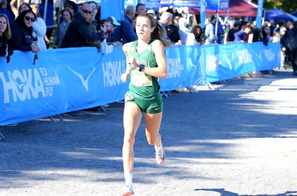 No. 2 Christian Brothers Academy NJ Wins Boys Eastern States; Assumption KY Wins Girls Title By Doug Binder, DyeStat Editor The second-ranked boys high school cross country team in the U.S. put five scorers between 12:40 and 13:08 on the 2.5-mile course Saturday at Van Cortlandt Park as the Manhattan Invitational turned 50. Christian Brothers Academy of Lincroft, N.J. won the Eastern States title, its first since 2017, with 72 points. The five scorers averaged 12:53.2. Nicholas Sullivan led the way for the Colts with an eighth-place finish in 12:40.4. Corning-Painted Post NY finsished 20 points ahead of Saint Anthony's NY for second in a head-to-head matchup between to two best teams in New York state. Corning won all five of the matchups and scored 151 points to 171 for Saint Anthony's. Assumption of Kentucky won the girls race, led by Reagan Gilmore's ninth-place overall finish (eighth in the scoring). The Rockets of Louisville scored 116 points and Bethlehem Central NY (130) and Haddonfield Memorial NJ (161) were second and third. JOHN NEPOLITAN PHOTOS | RESULTS Individually, Karrie Baloga from Cornwall Central NY, ranked No. 5, won the Eastern States race for the second year in a row and finished in 13:55.3 for the fifth-fastest performance in meet history. Baloga's time is 16 seconds faster than her winning time last year. Baloga's wining margin was 29 seconds. Zariel Macchia of William Floyd NY was second in 14:24.2 and Kate Putnam from Cicero-North Syracuse was third in 14:29.2. Devan Kipyego from St. Raphael RI won a lettered race last year (Varsity B) and stepped into the big race this time and won it in 12:14.4. Less than three seconds behind Kipyego was Antonio Camacho-Bucks of Centennial MD, who was second in 14:17.2. Nathan Lopez of St. John's Prep MA finished third in 14:18.4. More news |