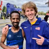 Still, college was not a run of uninterrupted triumphs. In track, he never finished higher than 12th in NCAAs nor won a Big Sky title until he was a senior. He once took a six-week break from running between semesters, gained six pounds and effectively lost an entire track season. Zienasellassie has made a career of comebacks. He always found his way back. “I wouldn’t say he has the most linear trajectory. Not that anyone does,” Culpepper said. In 2016, Zienasellassie appeared to be on a trajectory toward contention for a U.S. Olympic team. He became an American citizen, then ran 10,000 meters at Stanford in 27:52.70, finishing three seconds behind Bernard Lagat’s over-40 world record and becoming sixth-fastest U.S. collegian ever. More impressively, in his last college track race, Zienasellassie chased Cheserek to the wire in the NCAA 10,000 at Eugene, Ore. Zienassellassie closed in 57.30, nearly the same as the 17-time NCAA champion, who won by 29:09.57 to 29:10.68. Back at Eugene for the Olympic Trials, Zienassellassie dropped out of the 10,000. To continue as a pro, he signed on with HOKA NAZ Elite, believing he had more to achieve on the track. Thereafter, he did nothing of consequence on the track and eventually left the club and security of a shoe contract. He effectively resurrected his career by surprisingly winning his first U.S. title, at 10 miles, at Minneapolis in October 2019. His time was 46:55, or 4:41 per mile. Evidence of how meaningful the victory was were the tears he shed while giving a post-race interview, draped in an American flag. Money had been tight, he said, and a hamstring injury had impaired him for 18 months. “It’s been a really hard two years of running professionally,” he said afterward. It would get harder. Shut Down When the world shut down in March 2020, so did Zienasellassie. Without a contract or an upcoming race, and with a wife and son to support, what was the point? During the pandemic, he stopped training altogether for 10 weeks, took a part-time job shoveling snow at a Flagstaff golf course, worked at a rec center. “You just think, ‘We chose the wrong sport,’ “ he said. “For the time we put in, for how hard we work.” Eventually, he came back. Again. He began collaborating with James McKirdy, a former personal trainer who began coaching runners remotely. The workouts worked. And he stayed healthy. Zienasellassie has also credited Stover and NAU’s Eric Heins (now at Louisville) with shaping his destiny. In a span of 365 days, Zienasellassie turned in some of the best runs of his life: Fifth in the USA half-marathon in 1:01:21 at Hardeeville, S.C., Dec. 5, 2021; sixth in the USA 15K in 43:28 at Jacksonville March 5 (one place ahead of Galen Rupp); fourth (and first American) in the Cherry Blossom 10-mile at Washington, D.C., April 3; second in another USA half-marathon (one second behind Korir) in 1:02:36 at Indianapolis May 7; first in the marathon at Sacramento. He finished second to Korir in USA Track & Field’s 2022 road circuit standings. “My professional career has been an odd one,” Zienasellassie said. “It hasn’t been very consistent. A lot of it, obviously, is on me. And some of it is how circumstances happened.”