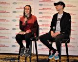PHOTO: Laura Muir and Woody Kincaid at a press conference in advance of the 2023 New Balance Indoor Grand Prix in Boston (photo by Jane Monti for Race Results Weekly)