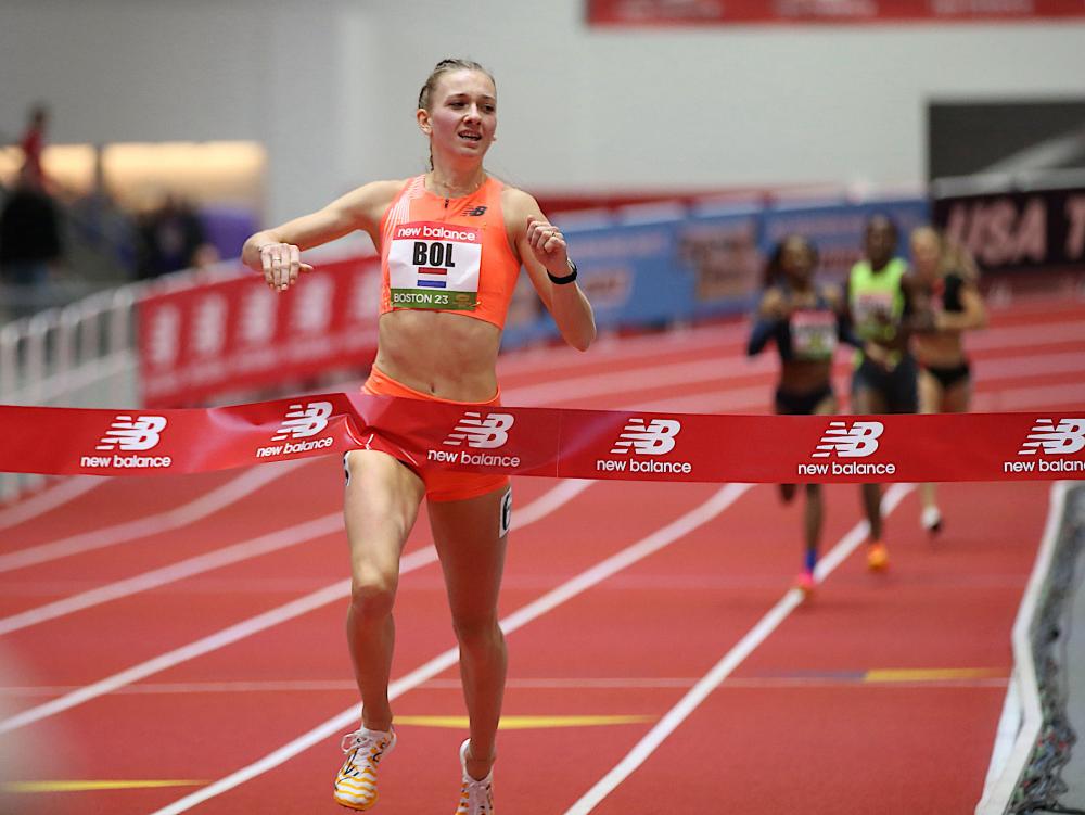 Sprint Victories For Aleia Hobbs, Noah Lyles Part Of Entertaining Afternoon In Boston By Doug Binder, DyeStat Editor John Nepolitan Photos | RESULTS Still just 22 years old, Femke Bol of The Netherlands opened her 2023 season at the New Balance Indoor Grand Prix with her first world indoor best Saturday in Boston. The World Championships silver medalist in the 400-meter hurdles and the European champion in the flat 400 crushed the all-time best in the 500 meters, running 1:05.63. The previous record of 1:06.31 by Russia's Olesya Forsheva had been on the books since 2006. For one of the world's great talents, who turns 23 later in less than three weeks, the 500 record was ripe for the taking. "It was fun to run a 500 to start (the season)," Bol said. "The 400 will be short now." Bol's performance kicked off the elite professional TV window at the new venue for the meet, The TRACK at New Balance. There were some February fireworks in the sprints, where Aleia Hobbs continued her hot start to the season by winning the 60 meters in 7.02 seconds. Noah Lyles ran a personal-best 6.507 to beat Trayvon Bromell (6.509) by a razor-thin margin. The men's mile was almost as close, as Great Britain's Neil Gourley beat Sam Tanner of New Zealand, 3:52.84 to 3:52.83. Sam Prakel was third in 3:53.58. Grant Holloway remained unbeaten in the 60-meter hurdles with a world-leading 7.38 seconds. Heather MacLean won a great women's mile race against Lucia Stafford of Canada, running a world-leading 4:23.42. She beat Stafford by a tenth of a second. MacLean's 1,500 split was 4:06.07. Ajee' Wilson won the women's 800 meters in 2:00.45 and Kaela Edwards established a new personal best in second place with 2:01.09. Woody Kincaid, who recently broke the American record in the indoor 5,000 meters on the track at Boston University, added a victory in the 3,000 meters with a personal-best 7:40.71. Christian Noble was second in 7:42.55. Great Britain star Laura Muir won her first race on U.S. soil when she took the 3,000 meters in 8:40.34. British runners swept the top four places. Mariano Garcia from Spain won the men's 800 meters in 1:45.26. Gabby Thomas, who attended nearby Harvard, won the 300 meters in a world-leading 36.41 seconds. Noah Williams won the men's 400 meters in 45.88 seconds. Devynne Charlton from the Bahamas won the women's 60-meter hurdles in 7.87 seconds. Bridget Williams added six centimeters to her career best in the pole vault and won the women's competition with 15-7.75 (4.77m). Olympic and World champion Katie Moon (formerly Nageotte) competed for the first time since her New Year's Eve wedding and finished fourth 14-7.25 (4.45m). Tejaswin Shankar of India, a former NCAA champion at Kansas State, won the men's high jump with a clearance at 7-5 (2.26m). In the Junior Boys International mile, Rocky Hansen (Christ School NC) ran a US#1 time of 4:01.11 to beat a strong field. Connor Burns (Southern Boone MO) finished second in 4:03.08 and Simeon Birnbaum (Stevens SD) was third in 4:05.29. Sadie Engelhardt (Ventura CA) moved to US#2 with her victory in the Junior Girls International mile, running 4:40.59. Tatum David (Olney IL) was closing on Engelhardt on the final lap, but finished second in 4:40.86. Early leader Ellie Shea (Emerging Elites MA) finished third in 4:42.08. The Chaminade NY boys won the George Eastment 4x800 relay and moved to US#1 with 7:51.92. More news |