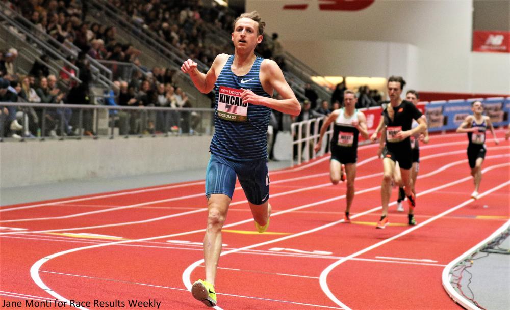PHOTO: Woody Kincaid wins the men's 3000m at the 2023 New Balance Indoor Grand Prix in Boston (photo by Jane Monti for Race Results Weekly)