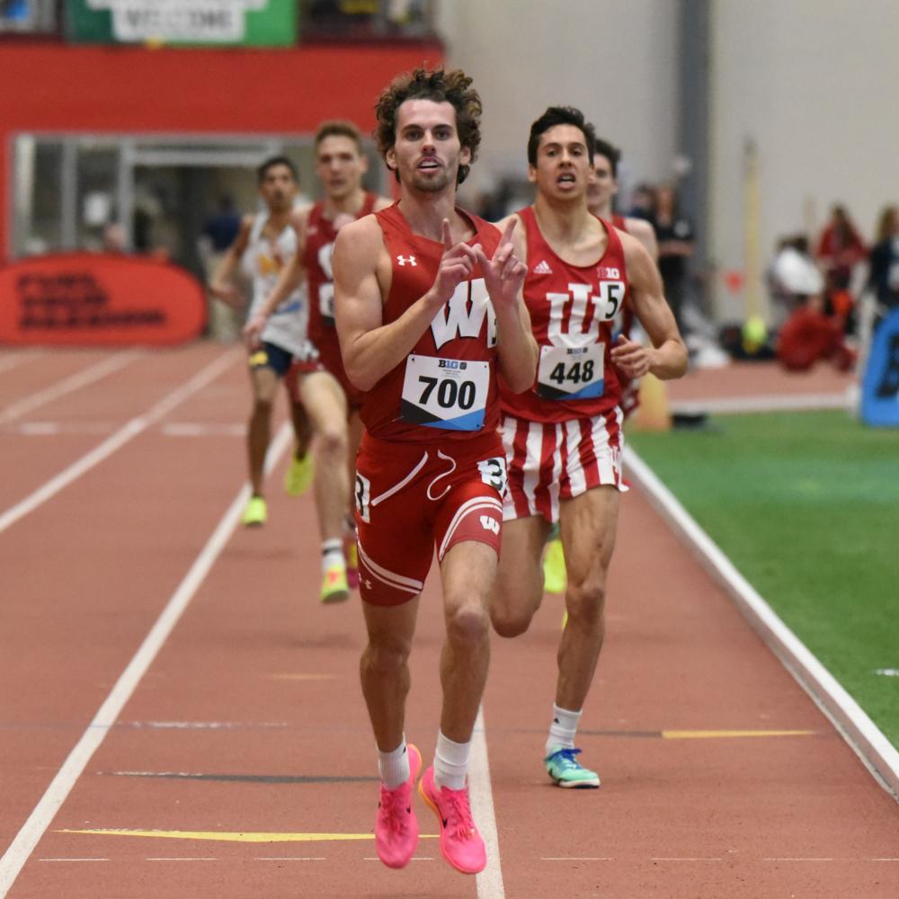 Distance Dominance Powers Wisconsin Men; Michigan Women Ride Long Sprints To Title By David Woods for DyeStat Carol Chen photos The biggest Big Ten happening didn’t officially happen. In the conference indoor meet, Iowa’s Jenoah McKiver seemingly won the 600 meters Saturday in 1:14.27. The time came on the SPIRE Institute’s 300-meter oversized track in Geneva, Ohio, but it would have been No. 3 in world indoor history – if it had counted. Only faster times have been by Donovan Brazier – 1:13.77 in 2019 and 1:13.97 in 2022. However, McKiver was disqualified for a lane violation on the first turn. On the other hand, the run should portend a great outdoor season. “That’s what we are hoping for,” Iowa coach Joey Woody told DyeStat in an email. McKiver, a 20-year-old sophomore, is a former football quarterback from High Point, N.C. He clocked 45.39 in an indoor 400 last year, was second at NCAAs (behind Randolph Ross) and then opened outdoors with a 44.74 at Tucson, Ariz. The April time was then No. 2 in the world. A hamstring injury ended McKiver’s spring. In his only previous meet this year, he ran a 400 in 46.26 at Iowa on Jan. 13. Wisconsin, already the Big Ten champion in cross country, made it 2-for-2 in men’s titles for 2022-23 by claiming its first indoor championship since 2014. The Badgers – led by Jackson Sharp’s double at 3,000 and 5,000 meters – scored 65 of their 110 points in the mile, 3,000, 5,000 and distance medley relay. “We knew we had some big guns ranked No. 1 in their respective events, but you don't win without a strong supporting cast who were also coming into the meet with very solid personal bests,” Wisconsin coach Mick Byrne said. “Across the board, our guys showed up.” Nebraska was second with 103, scoring 60 in field events and heptathlon. Iowa was third with 98 and Indiana fourth with 79. Sharp won Friday’s 5,000 in 14:07.80 and Saturday’s 3,000 in 7:51.53, winning both by less than a second over Indiana’s Jake Gephardt. Outside the distances, the Badgers scored 10 from Lawrence Johnson’s 6.61 victory in the 60. After McKiver’s DQ, Nebraska’s Nick Bryant was the 600 winner in 1:15.37. Including oversized tracks, Bryant climbed to 11th on the all-time collegiate list (behind McKiver’s 1:15.36 last year). Also for Nebraska, Jonah Wilson, a transfer from Washington, won the shot put at 68-5/20.85m. He ranks second in the NCAA. The Cornhuskers’ Darius Luff won the 60 hurdles in 7.65 after a 7.63 prelim. Oliver Desmueles led a 1-2-4 Penn State finish in the 800, clocking 1:47.87 in a race in which the top six were separated by .32. Women: Long sprinters spark Michigan