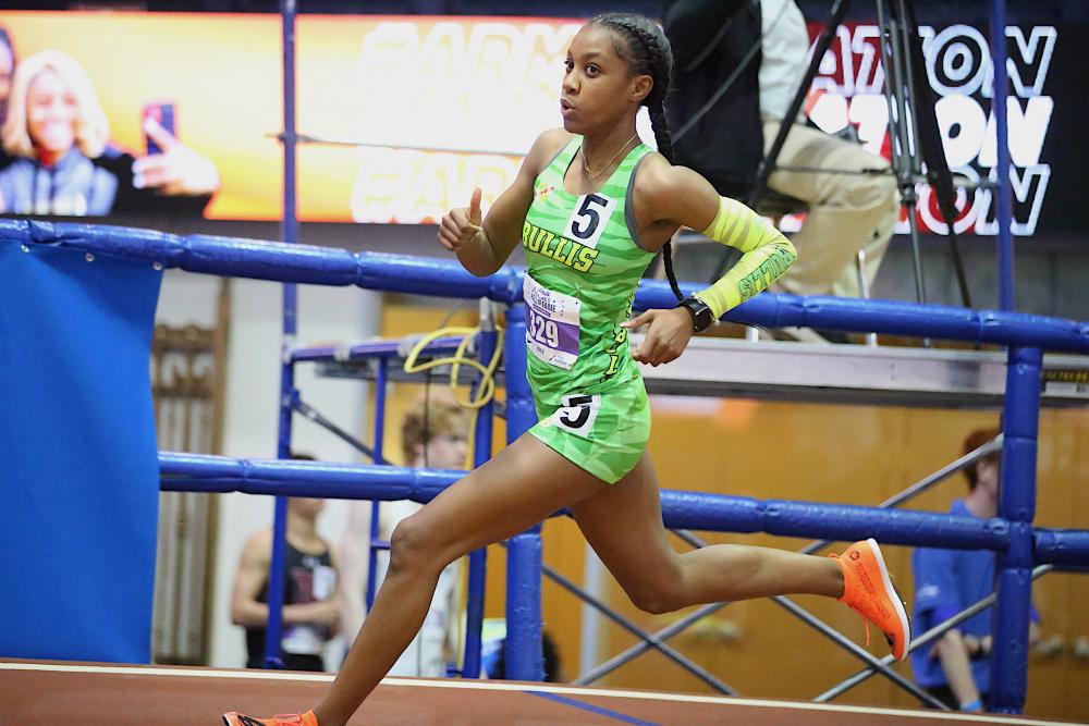 McDonogh MD Standout Wins 55m, 200m and 300m At The Armory By Doug Binder, DyeStat Editor Elise Cooper appears to be primed for a big junior indoor season after ripping through three events on Saturday at The Armory in New York at the JAMBAR Coaches Hall of Fame Invitational. Cooper, a junior at McDonogh School of Maryland, ran a personal-best 6.95 seconds to win the 55 meters, 23.57 to win the 200 and 38.44 to win the 300 on a busy day in Washington Heights. All three are early US#1 performances. McDonogh was a finalist in the 100 meters and 200 meters at New Balance Nationals Outdoor last spring, running 11.55 for third in the 100 and 23.31 for fourth in the 200. Matt Schutzbank of Nyack NY won the boys mile in 4:17.67 for the fastest time so far in the indoor season. David Davitt from Archbishop Stepanic ran 1:04.17 to win the 500 meters with a U.S.-leading time. Henry Koike-Sieira from Hunter College ran a US#1 time of 9:14.69 to win the 2-mile. In the boys 55-meter hurdles Yashahya Brown from Washington Township NJ ran 7.13 seconds for the win and a No. 1 ranking. Caroline Elliott from South Lakes VA dropped a US#1 time in the girls mile, 4:53.12 and edged Abby Downin of Tatnall School DE by nearly two seconds as the sophomores went 1-2. Morgan Rothwell from Bullis MD won the girls 500 meters in a US#1 time of 1:13.92. Sharlyn Ramirez Castillo of Riverdale Baptist MD ran a US#1 time of 54.47 in the 400 meters. Union Catholic NJ's Taylor Cox ran 7.95 seconds to win the girls 55-meter hurdles for a US#2 time. Gabriella Vizacarrondo from Nanuet NY threw a US#1 mark of 50-7.75 to win the girls weight throw. |