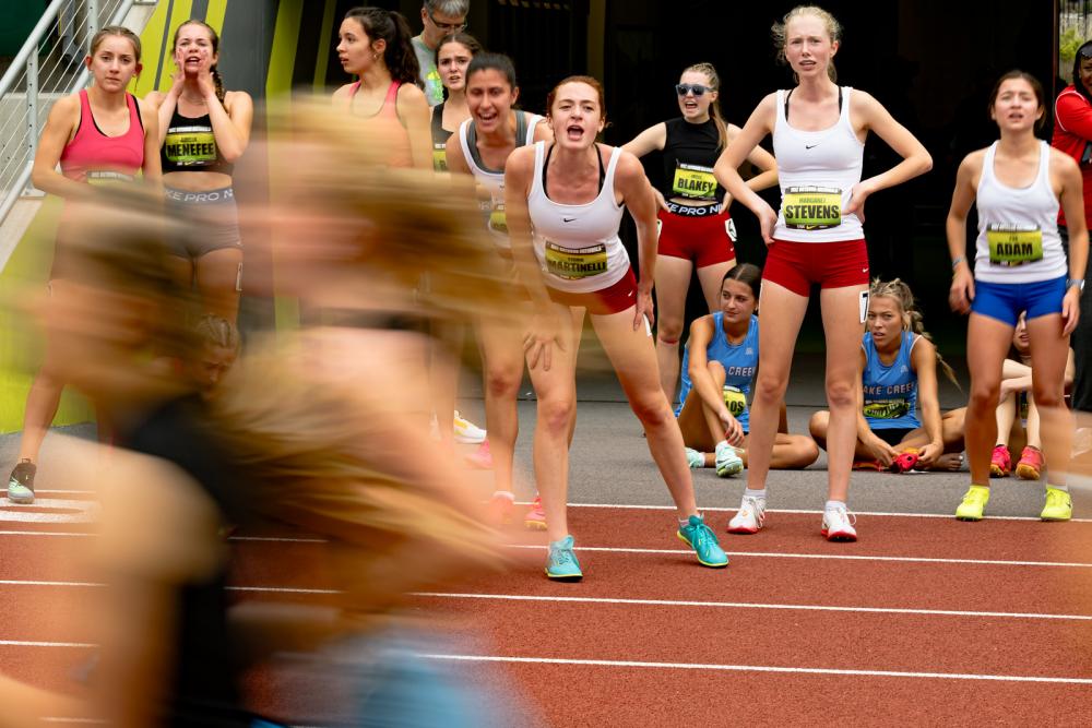 Relay runners urge on their teammates at Nike Outdoor Nationals.