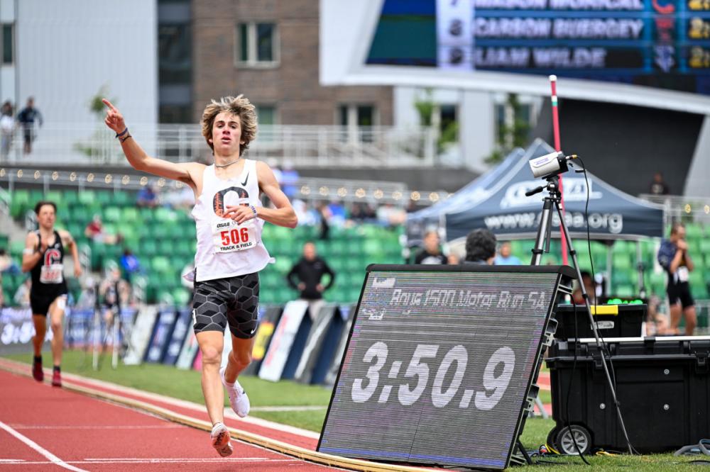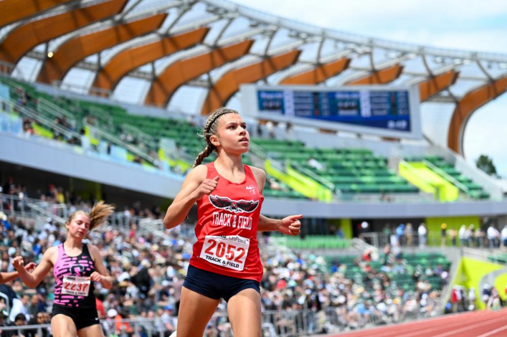 Josie Donelson, Josiah Tostenson, Maleigha Canaday-Elliott Deliver Stellar Performances At Oregon State Meet By Doug Binder, DyeStat Editor PHOTOS by Becky Holbrook and Kim Spir| INTERVIEWS EUGENE -- An unexpected era of tremendous girls sprinting in Oregon that has included Mia Brahe-Pedersen, Lily Jones and Sophia Beckmon added another legend at the Oregon state track and field championships this weekend. Lake Oswego's Josie Donelson, already cemented into state history as the fastest 400-meter runner and 300-meter hurdler Oregon has ever seen, won those two individual events and was part of two winning relays as the Lakers won their third straight Class 6A girls championship. Even with Brahe-Pedersen, an national champion several times over and one of the all-time best 100-and 200-meter sprinters in prep history, sidelined with injury, Lake Oswego had enough firepower to score 61 points and outlast Lincoln, second with 50. Donelson's signature moment came in the 400-meter finals where she dug deep to stay in front of McDaniel's Aayden Gallagher and smashed her own state record with US#6 52.83. It was a race that will go down as one of the most memorable and significant in state history. Donelson wasn't done, either. A little more than a week after running US#13 41.70 in the 300-meter hurdles at her district final, she won the state title in 43.51, beating teammate Cenaiya Billups (the daughter of the Trail Blazers coach, Chauncey Billups), and then coming back to the track yet again to split 55.08 to anchor the Lakers to victory in the 4x400 relay. Another record-breaking moment came in the girls triple jump, where McDaniel's Maleigha Canaday-Elliott put her maximum effort into her sixth and final attempt and became the first Oregon girl to go beyond 41 feet. Her mark of 41-2.25 is US#13. Lincoln freshman sensation Ellery Lincoln won her first state track title in the 1,500 meters, where she ran 4:25.64. She finished second to teammate Sophia Malinoski in a competitive 800 meters final. Sherwood and Sheldon tied for the Class 6A boys title with 46 points. The Bowmen of Sherwood got victories from Drew Smith in the javelin (197-9) and Andrew Waletich in the 400 (48.49). Sheldon got a big victory in the 3,000 meters from sophomore Malachi Schoenherr, who ran the second-fastest sophomore time in U.S. history, and Eli Forsha in the triple jump (47-1.50). In Class 5A, Crater junior Josiah Tostenson put one of the best distance doubles in state meet history together. He won the 3,000 meters in 8:12.94 and came back Saturday to win the 1,500 in 3:50.92. Last year's Crater star, Tyrone Gorze, now at the University of Washington, doubled 8:04.60 and 3:48.67 (second place), for perhaps the best two-day distance performance in meet history. The Summit boys scored in 14 of 17 events to amass 106 points to win the 5A team title. Summit's girls made it a sweep and won with 79 points. Pharalynn Dickson, a sophomore from South Albany, swept the 100-200-400 combo for the second year in a row, with 12.21/24.86/56.42. The 200 and 400 times were personal bests. Crook County won the Class 4A title with 96 points, scoring in every event except the 400 meters and the discus. Baker's Rasean Jones became the third-fastest 110-meter hurdler in state history when he clocked 13.96 to win the 4A final. Marshfield's Bodey Lutey won the 400 meters in 47.97 for the fastest time in the state regardless of classification. Philomath won the 4A girls title with 74 points, powered by Janice Hellesto's victory in the 100, second-place finish in the 200 and anchor leg in the victorious 4x100 relay. Valley Catholic won the 3A boys championship with 74 points as Andrew Klopcic won the long jump, triple jump and 400 meters. Coquille won the girls 3A crown with 84.5 points. Junior Holli Vigue won the shot put and discus. Delphian's boys scored 68 points to win the 2A title; Bandon rolled to a big score of 97 to take the girls team championship, scoring in all but four events. Imbler's boys and Adrian's girls won the Class 1A titles. Team Champions - Class 6A - Sherwood/Sheldon boys (tie) 46 points, Lake Oswego girls 61 points - RESULTS Class 5A - Summit boys 106 points, Summit girls 79 points - RESULTS Class 4A - Crook County boys 96 points, Philomath girls 74 points - RESULTS Class 3A - Valley Catholic boys 74 points, Coquille girls 84.5 points - RESULTS Class 2A - Delphian boys 68 points, Bandon girls 97 points - RESULTS Class 1A - Imbler boys 77 points, Adrian girls 68 points - RESULTS More news |