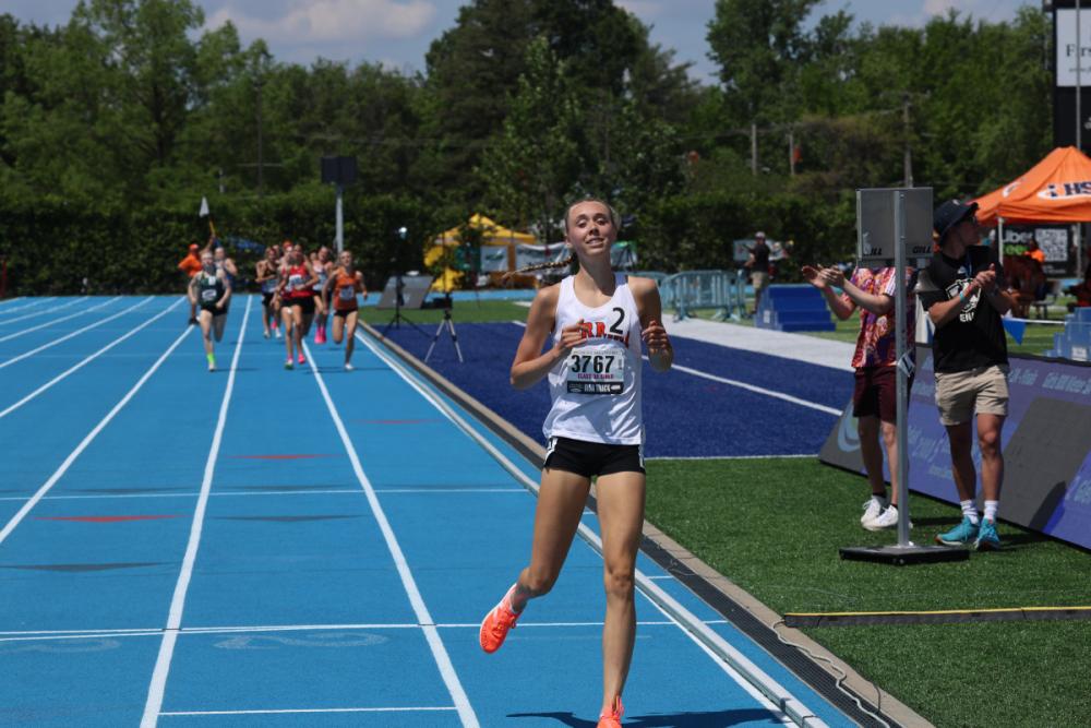 Ince’s race trademark is to push the third quarter of the race from 400-meters to 600-meters. It is a section of the that some runners take a siesta and let the pace drop a little bit. Ince knew from experience that is where she would win. She passed 600-meters in 1:30.2 knowing she was on her way to a state title. Now would it be the time she had been shooting for in her high school life?