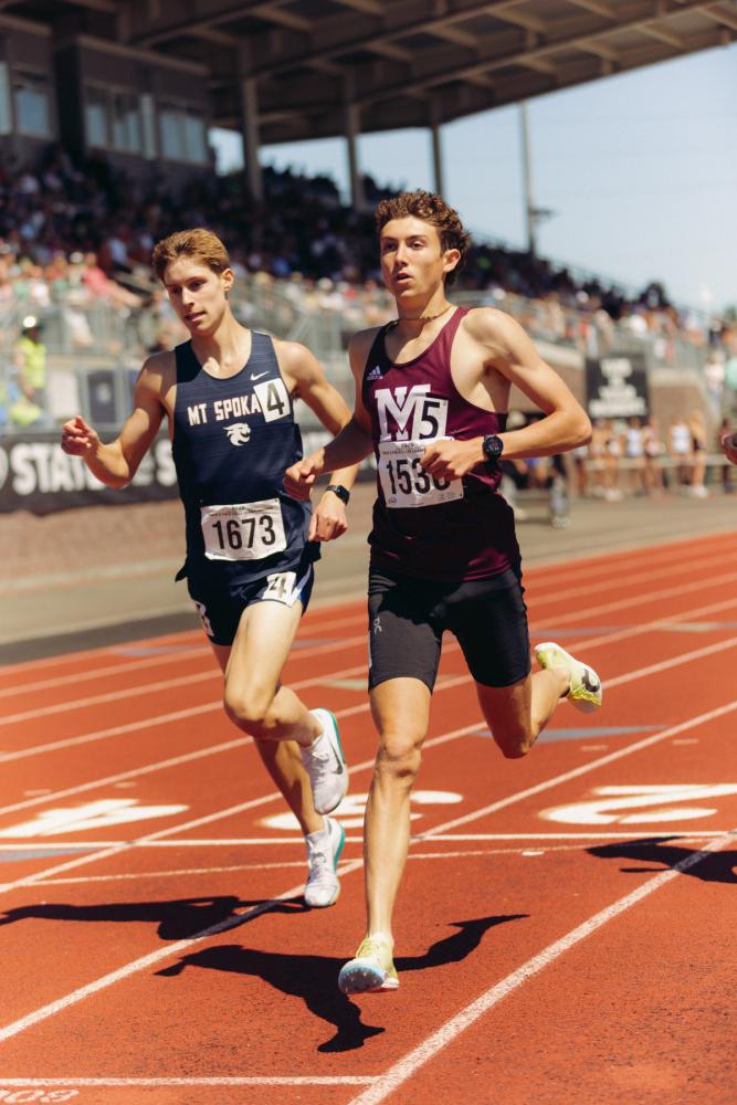 Owen Powell Enters Washington State Meet Record Book With 800/1,600 Double By Oliver Hinson of DyeStat Ethan Buck photos TACOMA, Wash. — Owen Powell cemented his legacy at the WIAA Outdoor State Championships with two meet record performances at Mount Tahoma High this weekend. The Mercer Island senior broke the Class 3A records in the 1,600 meters and 800 meters, running 4:03.68 in the former and 1:49.28 in the latter. He quickly gained sizable leads in each race, deciding early to not leave anything for a kick. Powell said he wasn’t aiming to break either of those records, but facing stiff competition allowed him to do so (despite the fact that the competition was several seconds back). “That wasn’t really the goal… it was just to go out and win,” Powell said, “but I think the fields are so good this year, that’s what it took to win.” Powell will have a few more chances to add accolades to his high school career as his season transitions to the national stage. He’ll be competing at the HOKA Festival of Miles and the Brooks PR Invitational next week. This weekend, however, was his last chance to wear a Mercer Island jersey. “It’s really bittersweet,” Powell said. “I brought it up to my coach at one point. When she realized that, she got a little teary as well… but I think that’s a good last couple of races to end on in this singlet.” Powell said after every race, good or bad, he writes his takeaways in a journal. His first words for this entry: “Beyond happy.” On the girls’ side, two of Powell’s Mercer Island teammates, Sophia Rodriguez and Aaliyah Khan, enjoyed similarly stellar weekends. Rodriguez swept the long distance events, winning the 1,600 meters in 4:47.64 and the 3,200 meters in 10:16.33. Like Powell, she went out hard in both races and won big; she won the 1,600 by five seconds and the 3,200 by 20. Rodriguez will also be competing in some national events in June — she’ll be running at Brooks with Powell and at Nike Outdoor Nationals. She said she wants to make a few adjustments for those races; most notably, she needs to be more confident in running her own race. Khan, meanwhile, broke the 3A meet record in the long jump with a mark of 19-4.50. She struggled in her first few jumps, fouling twice and only managing 18-3.25 before the finals, but she broke through on her last attempt, setting a personal best by over a foot. Rodriguez and Khan’s performances helped Mercer Island take the 3A girls team title with 70 points. The most dominant performance of the weekend on the girls’ side, though, was that of Lane McKenzie from Cedarcrest. She took home four gold medals in the 2A division, winning the triple jump (39-11), 100 meters (12.10), 200 meters (24.32) and long jump (19-7.75). Her marks in the latter two were both meet records. “I’ve worked a lot this season, and (winning four events) was definitely one of my goals going into it,” McKenzie said. “Being able to accomplish that and make it here and be able to perform again… it’s really exciting for me. All the work feels like it’s paid off.” As she crossed the line in the 200 and clinched her fourth gold, she felt a mix of emotions, but she said excitement was not the most prominent one — it was relaxation. She had finally done it, and her work for the weekend was over. Karina Cooper (Camas) was the only other field athlete on the girls’ side to break a meet record. She cleared 13-2 in the pole vault to break the old record by half an inch. After that, she set the bar at 13-3.50 in hopes of breaking Camas’ school record, but none of her attempts at that height were particularly close. On the track, Iren Derricks of Emerald Ridge echoed McKenzie in pulling off a sprint double, winning the 4A girls 100 meters and 200 meters. She ran 11.68 in the 100 and broke the meet record in the 200 with a 24.10 performance. On the distance side, Kjirsten Ludeman (Sehome) and Ciana Johnson (Ballard) broke meet records in their respective 800 meters races; Ludeman ran 2:11.08 to win the 2A division, while Johnson ran 2:08.61 to win 3A. Alexa Matora (Lake Washington) and Sloan Dickson (Lynden) picked up two gold medals each in their distance events. Matora won the 4A 800 meters and 1,600 meters, while Dickson won the 1,600 and 3,200 in 2A. Rochelle Jeffries (Foster), meanwhile, dominated the 2A hurdle races, winning the 100-and 3000meter hurdles. She ran 14.47 in the 100 and then came within 0.08 seconds of breaking the meet record in the 300 with a 43.28 performance. Mt. Spokane capped the meet with a meet record in the 4x400 meter relay, running 3:50.27. The Sehome girls, who finished second, also broke the previous record with their time of 3:54.82. Sehome won the 2A girls team title thanks to a plethora of podium finishes in the distance events; between the 800, 1,600, and 3,200 alone, they scored 46 points. Mt. Si won the 4A division with 58 points, putting a 19-point gap on runner-up Eastlake. Nicholas Altheimer solidifies domination of Washington sprinting Curtis’ Nicholas Altheimer knows he owns the sprints in Washington, and he considered this weekend a chance to prove that. Altheimer competed in three events in the 4A division on Saturday and won all of them. He started his day with a win in the 100 meters, running 10.59 to beat runner-up Jordan Miller (Kentridge) by two tenths of a second. Less than an hour later, he came back in the 4x100 relay and helped Curtis take the win with a time of 40.93. That performance was actually slower than what Curtis ran in the preliminary round, where the group ran 40.84 to break the meet record in the heats on Friday. Altheimer’s last event was the 200 meters, and he finished his weekend with another gold medal and another meet record performance, crossing the line in 21.07 seconds. Altheimer said this weekend was all about meeting or exceeding expectations. “They’re very high, they’re set for me,” Altheimer said. 