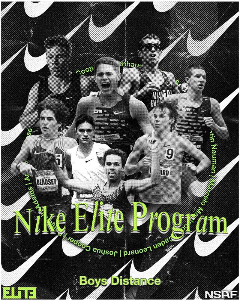 Westwood, MA - The National Scholastic Athletics Foundation (NSAF), USATF, and Nike are proud to announce the members of the Nike Elite Program powered by the NSAF. This is the third year of the ground-breaking program that provides comprehensive support for 43 of the United States’ top high school track and field athletes for the 2025-2026 school calendar year. The Nike Elite Program, powered by NSAF, is centered around five core elements meant to equip the athlete with the best support system for him/her to achieve their goals and become competitive at an international level. The five core elements are: Guidance. A dedicated, highly qualified program manager will serve as a touchstone for Nike Elite Program athletes throughout the year. Product. Nike, the global leader in footwear and apparel, will provide training and competition apparel and footwear to the Nike Elite Program athletes throughout the program. Mentorship. Nike-sponsored professional athletes and collegiate athletes who have completed the Program will serve as mentors for Nike Elite Program athletes. Opportunity. Provide support to compete in highly competitive and national championship events throughout the year, including Nike Indoor Nationals, Nike Outdoor Nationals, NSAF “select” events such as the Millrose Games, Arcadia Invitational, and Mt. SAC Invitationals, and USATF U20 Championships. Community. Throughout the program, athletes have the opportunity to develop relationships with peers in their event group and across the sport. The 43 athletes will be invited to a Kick-Off Event at the Nike World Headquarters in Beaverton, Oregon, from July 18-21, 2025. There, they will learn about the year-long program, tour the Nike World Headquarters, meet the Nike Elite Program staff and other Nike Elite program athletes, and more. The Nike Elite Program team is composed of athletes from 19 states across sprint, hurdles, throws, jumps, and distance track and field disciplines. Thirteen athletes return to the program, with four athletes returning for the third time: Sophia Rodriguez, Elizabeth Leachman, Kimberly Beard, and Kendrick Jones, Jr. Texas has the largest number of athletes with 13 selections, with Oregon and Washington next best with three. Six athletes ranked number-one in the US at the end of the season were selected: Kimberly Beard (Hammer Throw); Tate Taylor (100m and 200m); Cooper Lutkenahus (800m); Quentin Nauman (1,600m); Kendrick Joshua (400m hurdles); and Victor Olesen (Pole Vault). Two national record holders were included in this class: Cooper Lutkenhaus (800m indoor and outdoor) and Tate Taylor (100m outdoors and 200m indoors). The complete 2025 Nike Elite Program athletes are as follows: Benjamin Adams (Mountain Vista, Highland Ranch, CO) - CO State Champion. 2nd fastest mile sophomore of all time. 3rd fastest 2-mile sophomore of all time. Lily Alder (Timpview, Provo, UT) - 2 Time Selection. 2-time UT State Champion. HS National Champion. 5-time All-American. 7th fastest 1-mile junior of all time. Ellie Barada (South, Bloomington, IN) - IN State Champion. HS National Champion. 3-time All-American. Blair Bartlett (The Lawrence School, Lawrenceville, NJ) - 2-Time NJISAA Champion. 3-time All-American. 2nd fastest 3,000m sophomore of all time. 8th fastest 1 mile sophomore of all time. Kimberly Beard (King’s Academy, Seattle, WA) - 3 Time Selection. 4-time WA State Champion. 2-time HS National Champion. 3-time USATF JO Champion. Freshman Hammer throw record holder. Journee Belcher (Rickards, Tallahassee, FL) - FL State Champion. 2025 All-American. Andrew Beroset (Gulf Breeze, FL) - Sixth fastest miler and 2 miler sophomore of all time. Gabbie Bishop (Providence Classical Christian Academy, Rogers, AR) - 6-time Arkansas state champion. 2025 All-American. Angel Brefo (Heritage, Midlothian, TX) - 2-time TX State Champion. 2-time All-American. Destiny Coleman (Woodlawn, Gwynn Oak, MD) - 4-time MD State Champion. National Champion. 5-time All-American. Joshua Cooper (Willow Spring, Fuquay Varina, NC) - 2025 All-American. 2nd fastest 500m indoor sophomore of all time. 3rd fastest 800m sophomore of all time. Jasir Fontenot (San Diego, CA) - CA State Champion. 2-time MS National Champion. 3-time USATF JO Champion. 2-time All-American. 110m Hurdles Freshman Record Holder. Nia Harrison (Greenhill, Addison, TX) - 4-time All-American. Second NEP selection. Jaelen Hunter (Servite, Anaheim, CA) - 6th fastest 400m freshman of all time. Marissa Johnson (Tigard, OR) - 2-time Selection. 5-time OR State Champion. USATF JO Champion. 4-time All-American. Andrew Jones (Kelin Collins, Spring, TX) - 2-time TX State Champion. National Champion. USATF JO Champion. 2-time All-American. Kendrick Jones Jr (Lake Belton, Temple, TX) - 3-time selection. 3-time TX State Champion. HS National Champion. 3-time AAU JO Champion. 6-time All-American. 2 AAU JO National Records. Kendrick Joshua (Richmond Hill, GA) - GA State Champion. USATF U20 Champion Ava Kitchings (Greater Atlanta Christian, Norcross, GA) - 2-time HS National Champion. GA State Champion. USATF U20 Champion. USATF JO Champion. 6-time All-American. Elizabeth Leachman (Champion, Boerne, TX) - 3-time Selection. 5-time TX State Champion. 4-time HS National Champion, 3-time National Record Holder, 2024 Olympic Trials Qualifier. Caden Leonard (Carroll, Southlake, TX) - 5-time TX State champion. 2024 All-American. Fourth fastest mile sophomore of all time. Ellery Lincoln (Lincoln, Portland, OR) - 2 Time Selection. OR State Champion. 2-time All-American. 7th fastest mile sophomore of all time. Brooke Lloyd (Summer Creek, Humble, TX) - 2-time selection. 2-time National Champion. TX State Champion. 3-time All-American. Cooper Lutkenhaus (Northwest, Justin, TX) - 2-time selection. 2 TX State titles and 5 National Championships. US HS 800m indoor, 1:43.86 and outdoor, 1:45.45 record holder. Undefeated against high schoolers in the 800m in his career. Marcelo Mantecon (Belen Jesuit, M