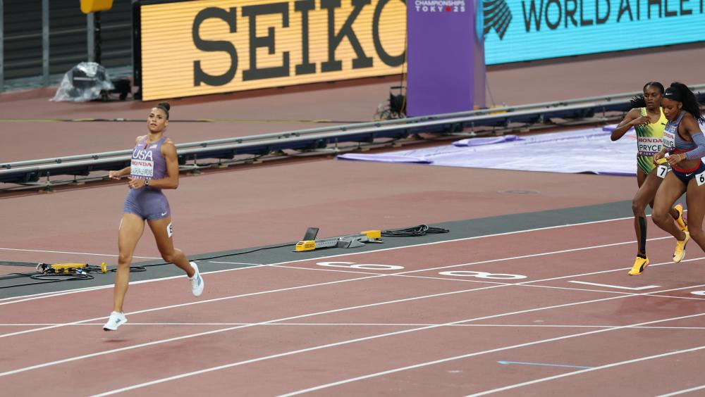 Sanya Richards-Ross' 2006 Record Broken In World Championships Semifinal By Doug Binder, DyeStat Editor Logan Hannigan-Downs photo TOKYO -- With barriers or without, Sydney McLaughlin-Levrone is the greatest female quarter-miler in American history. In Tuesday's 400-meter semifinals at the World Athletics Championships, McLaughlin-Levrone made 48.29 look effortless and took nearly half a second off Sanya Richards-Ross' 19-year-old American record. Richards-Ross ran 48.70 at the World Cup in Athens, Greece in 2006. The performance surely sent a message to the two women who have been on top of the world list, Marileidy Paulino of the Dominican Republic and Salwa Eid Naser of Bahrain. The final on Thursday is shaping up to be must-see viewing. "Honored, for sure," McLaughlin said of the record-breaking run. "I wasn't expecting that time, but it shows the fitness is there, I'm set up for the finals and am grateful to have taken down a record by an amazing woman." McLaughlin's time makes her the seventh fastest in world history, and still behind Paulino and Naser on that list. It also puts her 400-meter best almost two seconds faster than her world record in the 400-meter hurdles, the event that she has shelved for 2025, which is 50.37. McLaughlin-Levrone won her first Olympic gold medals in an empty Japan National Stadium in the summer of 2021, where she won the 400-meter hurdles final in 51.46 seconds and then carried the baton for the U.S. in the 4x400 relay. Paulino ran in the first of three semifinal heats and let up at end, finishing second in 49.82 seconds. El Naser won the second semi in 49.47 seconds. McLaughln-Levrone got out smooth, coasted the back stretch and remained powerful coming off the final curve and down the homestretch. Well behind her, Amber Anning of Great Britain edged out former Arkansas teammate Nickisha Pryce of Jamaica, 49.38 to 49.46 for the second automatic qualifying berth. Pryce got into the final as one of the two fastest outside of the top two, and it bumped their training partner, Isabella Whittaker of the U.S., out of the final by one spot. More news |