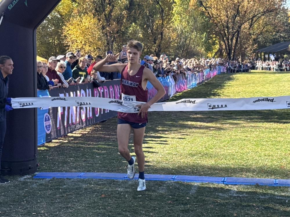 Jackson Spencer Runs 14:29.8 At Sugar House Park, Wins By More Than 45 Seconds; Herriman Edges American Fork, 60-62; No. 1 Lone Peak Girls Win Sixth Title In Seven Years By Doug Binder, DyeStat Editor Donal Pearce photos The No. 1 runner in the country, Jackson Spencer of Herriman, won the Utah Class 6A state cross country final on Wednesday with 14:29.78 on the three-mile layout at Sugar House Park. Spencer had plenty of time to catch his breath and enjoy the close team battle behind him as his Mustangs pulled out a narrow 60-62 victory over rival American Fork. "It feels great," Spencer said. "I was going into this race just hoping that I could pull out another special performance. This is the toughest course that we have to face so I'm super glad that I was able to get a fast time on it." It was the third year in a row in which the team championship was decided by six points or fewer and it was Herriman's second straight victory. "If think if we stopped 400 meters out, we lose," Herriman coach Doug Soles said. "We knew that it was close and we knew that we needed to finish. We had a plan to come off that pond, cooking." AF was led by brothers Grant and Chase Hejny, who placed fourth and fifth. American Fork's Skye Jensen ran off with her second straight Class 6A girls individual title with a winning time of 17:39.0. No. 1-ranked Lone Peak, led by runner-up Maya Bybee (17:52) won its sixth girls 6A team championship in seven years, scoring 31 points. It was a similar performance to 2024 when the team scored 29 points and then went on to eventually finish second at Nike Cross Nationals. This year's team was slightly faster across the board. American Fork was a strong second with 52 points. Lily Alder of Timpview followed the three consecutive Class 5A titles won by former teammate Jane Hedengren with her winning time of 17:28. Springville won the team title with 79 points, beating Viewmont (88) and Box Elder (97). Logan Rohatinsky led Maple Mountain to the 5A boys team title with his individual victory in 15:13.7. In the 3A finals held Wednesday, Rozlyn Stowe of Carbon turned in the fastest time by any girl in the state when she won her third title in 17:12.7. Paul Gardner from Manti won the boys 3A crown with 15:45.1. The Richfield boys won the team title with 59 points and Carbon was second with 103. The meet began with the 4A, 2A and 1A finals on Tuesday. The Mountain View boys maintained their dominance in the 4A boys race, winning the title with 44 points. Peter Mecham of Orem won the individual title in 15:20.8. He wore a band on his wrist to honor Orem coach Andrew Jacobs, who died suddenly of a heart attack over the summer. Madelyn Reeder of Highland won the girls 4A race in 17:28.2. Kenidee Glazier won the 2A girls race in 18:51.2. North Summit put four in the top nine on the way to victory with 35 points. North Sevier won the boys 2A title with 76 points. Panguitch swept the Class 1A team titles. TEAM CHAMPIONS Class 6A - Herriman boys 60 points, Lone Peak girls 31 points Class 5A - Maple Mountain boys 86 points, Springville girls 79 points Class 4A - Mountain View boys 44 points, Park City girls 108 points Class 3A - Richfield boys 59 points, Emery girls 71 points Class 2A - North Sevier boys 76 points, North Summit girls 35 points Class 1A - Panguitch 64 points, Panguitch girls 33 points More news |
