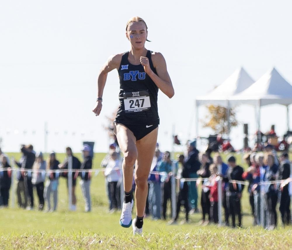 BYU Freshman Jane Hedengren Wins First Conference Title; Brian Musau Wins Third Conference Title And Leads No. 2 Oklahoma State Upset Of No. 1 Iowa State By Doug Binder, DyeStat Editor Kylie Graham Photos Jane Hedengren picked up where she left off in her college debut at Pre-Nationals and dominated the Big 12 Cross Country Championship women's 6-kilometer final on Friday at Rim Rock Farm in Lawrence, Kan. The freshman from BYU sped away from the field and won by an incredible 45 seconds in 18:29.6. Hedengren went through the 5,000-meter split in 15:20.3 and by that time had a 38-second lead over Joy Naukot of West Virginia. Naukot, who was 17th at the NCAA Cross Country Championships in 2024 and third in the NCAA 10,000 meters final last June, finished second in 19:14.3. BYU put five scorers in the top 13 and won the women's team title with 38 points. Iowa State was second with 71 points and West Virginia won a tiebreaker for third with Oklahoma State after both scored 86 points. BYU's Riley Chamberlain finished third in 19:15.2 and the Cougars' remaining scorers were Nelah Roberts in 10th, Taylor Lovell, 11th, and Zariel Macchia in 13th. Meanwhile, Oklahoma State's men put together a dominant 20-point gem together to defeat No. 1 Iowa State for the men's team championship. It was a drama-filled week for Iowa State, which in the past week suspended several members of the men's team for what head coach Jeremy Sudbury called "a violation of team rules." A cloud of suspicion hung over the program as information about which athetes were suspended and for what reason. Also, it was reported that Robin Kwemoi Bera was arrested for leaving the scene of an auto accident and will face an upcoming court appearance. The arrest did not earn Bera a suspension. He ran Friday and finished third to lead the Cyclones to second place with 43 points. Brian Musau of Oklahoma State, the NCAA 5,000 meters champion last June, led a 1-2 finish for the Cowboys with his victory in 22:53.7. It was Musau's third consecutive Big 12 cross country title. Teammate Adisu Guadia was second in 22:55.3, just ahead of Bera. Denis Kipngetich of Oklahoma State was fourth, Fouad Messaoudi was sixth and Ryan Schoppe was seventh to complete the Cowboys' scoring. Joash Ruto of Iowa State was fifth. Colorado, led by Dominic Serem's ninth-place finish, finished third in the team standings with 87 points. BYU, led by freshman Tayvon Kitchen's 15th place finish, was fourth with 102 points. More news |