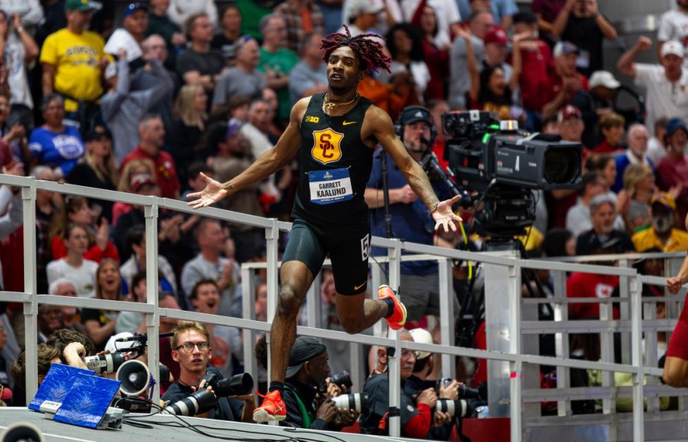 USC’s Garrett Kaalund, who broke the American indoor record in the 200 in 19.95 seconds at the NCAA championships, will be making his outdoor season debut for the Trojans as one of the favorites to sweep both the 100 and 200 this weekend. Last spring, Kaalund ran a wind-aided 9.93 (+2.4) and 19.85 on his way to leading USC to a share of the outdoor team title.