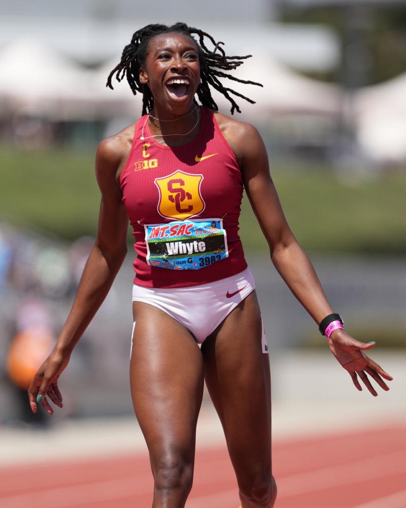 Whyte Quickly Turns Around From USC's NCAA-Leading 4x100 Relay With 49.64 In Invitational 400; Washington's Hana Moll Breaks Own Pole Vault Collegiate Outdoor Record; Texas State's Elisbet Rut Runarsdottir Throws No. 9 All-Time Hammer Mark By Keenan Gray of DyeStat Sam Givner photos WALNUT, Calif. - In just a 50-minute window, Madison Whyte helped USC run an NCAA leader in the women's 4x100 relay and then powered through one of the fastest 400-meter times in NCAA history. The NCAA indoor 400 runner-up helped USC post a school record with 42.12 seconds in the relay. That effort seemed to help Whyte warm up for the 400, where she ran the ninth-fastest collegiate time in history with a 49.64-second performance Saturday afternoon at the 66th Mt. SAC Relays. Whyte, with her teammates Christine Mallard, Mia Brahe-Pedersen and Brianna Selby, bettered the school's previous best of 42.21 from 2019 and now are in a tie with Oregon for the third-fastest program in NCAA history. That time of 42.12 is also the seventh-fastest performance in NCAA history, trailing four teams from Texas anchored by Julien Alfred and two teams from LSU. Texas has the collegiate record in 41.55. USC's win was so dominant that its crosstown rival, UCLA, finished over a second and half behind in 43.67 for second. Arizona was third in 44.03 and Stanford was fourth in 44.56. USC was also a half a second faster than South Carolina, which ran NCAA#2 42.62 at the Tom Jones Memorial in Gainesville, Fla. "We already knew what we were going to do," Whyte said. "We just had to execute and we did it. We're just up from here." Carrying momentum from the relay over to her only individual race of the afternoon, Whyte managed to hold off both Sanaria Butler and Kaylyn Brown, two members from Arkansas' winning 4x400 relay at the NCAA Indoor Championships, with her 49.64, which was another USC school record. Butler finished second in an NCAA#3 49.86, the 13th fastest time in collegiate outdoor history, and Brown took third in an NCAA#4 50.30. LSU's Ella Onojuvwevwo in the NCAA leader in 49.59, No. 8 all-time. Iowa State's Rachel Joseph ran an NCAA#9 50.98 for fourth. The 2024 Olympic 400 hurdles silver medalist Anna Cockrell ran a personal best 51.49. Aside from one other individual track event won by a collegian, which was Saira Prince of Arkansas in the invitational 400 hurdles (55.86, NCAA#8), four pros combined to win the 100, 200, 800 and 100 hurdles. American Tamari Davis, representing adidas, held off both of USC's Selby and Brahe-Pedersen with a 11.11-second run into a -1.6 headwind. American Jenna Prandini won the invitational 200 in 22.43. The 33-year-old made her season debut with a new sponsor, On Athletics, after representing Puma for the majority of her professional career. St. Vincent's Shafiqua Maloney, representing Puma, outlasted Arkansas' Sanu Jallow to win the invitational 800. The former Razorback Maloney won by a margin of 1:59.54 to 1:59.70. Jallow's time is second in the NCAA this season. American Danae Dyer of HurdleMechanic, a 2026 World Indoor qualifier in the 60 hurdles, won the invitational 100 hurdles, defeating another American, Keni Harrison, 12.76 to 12.88. Oregon's Aaliyah McCormick the reigning NCAA outdoor and indoor short hurdles champion, was third in 12.96. In the 4x400, Arkansas, despite dropping the baton on the final exchange, ran a 3;29.24 to beat Haystack, which was a pro line-up of Shae Anderson, Raevyn Rogers, Allie Jones and Jasmine Jones. Off the track, Washington's Hana Moll raised her collegiate outdoor pole vault record up half an inch to 4.80 meters (15-9) to win the invitational competition by 25 centimeters. California's Ali Sahaida and South Dakota's Anna Willis both cleared a season's best 4.55m (14-11) to finish second and third, respectively. Both marks are also NCAA top five. Texas State's Elisabet Rut Runarsdottir threw a lifetime best and an NCAA No. 9 all-time 72.89m (239-1) to take the women's hammer contest. Texas Tech's Temitope Adeshina, the NCAA indoor high jump champion, cleared an NCAA#1 1.95m (6-4.75), beating Margueritte Lorenzo by seven centimeters. Vashti Cunningham was third at 1.83m (6-0). Another Texas Tech athlete, Tamiah Washington, won the invitational triple jump with an NCAA#3 13.41m (44-0) leap. Canadian 19-year-old Julia Tunks recorded a 63.58m (208-7) toss in the invitational discus, beating American Laulauga Tausaga, the 2023 world champion. USC's Ashley Erasmus, a 2024 Olympian and 2025 World Outdoor qualifier for South Africa, won the invitational shot put by throwing 17.90m (58-8.75). More news |